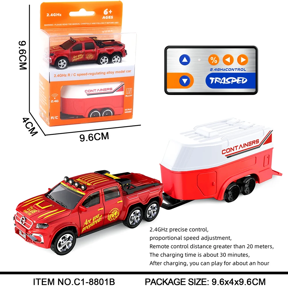 Experience the thrill of racing with this highly detailed 1:64 scale metal alloy remote control vehicle. Designed to resemble real cars with dynamic curves, bold colors, and realistic decals, this miniature is perfect for enthusiasts aged 14 and above. The vehicle’s metallic finish and intricate embellishments evoke a sense of speed, power, and adventure. The collection features vibrant hues such as vivid red, striking blue, deep black, and lively green, all accented with racing stripes, grill details, and roof accessories. Crafted from premium PVC and alloy, this model offers durability and a premium look. Whether for display or play, this car provides a realistic, immersive experience.