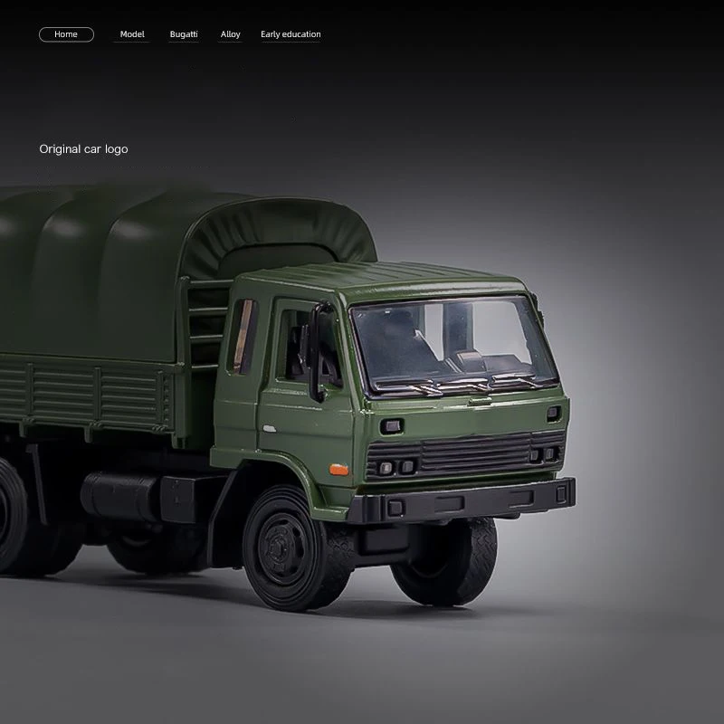 This collection features six 1:64 scale miniature truck models, crafted from a durable combination of alloy and plastic. Each truck measures approximately 12.5 cm in length, 4.5 cm in width, and 5.5 cm in height, showcasing distinct colors of vibrant blue and military green with contrasting body and cab hues. The rounded cargo covers, resembling tarpaulins, add a unique touch while detailed headlights, grilles, and windows enhance realism. With sturdy black wheels, these trucks combine playful design with authenticity, making them perfect for both display and enjoyment. Suitable for collectors and enthusiasts alike, these models are sure to captivate.