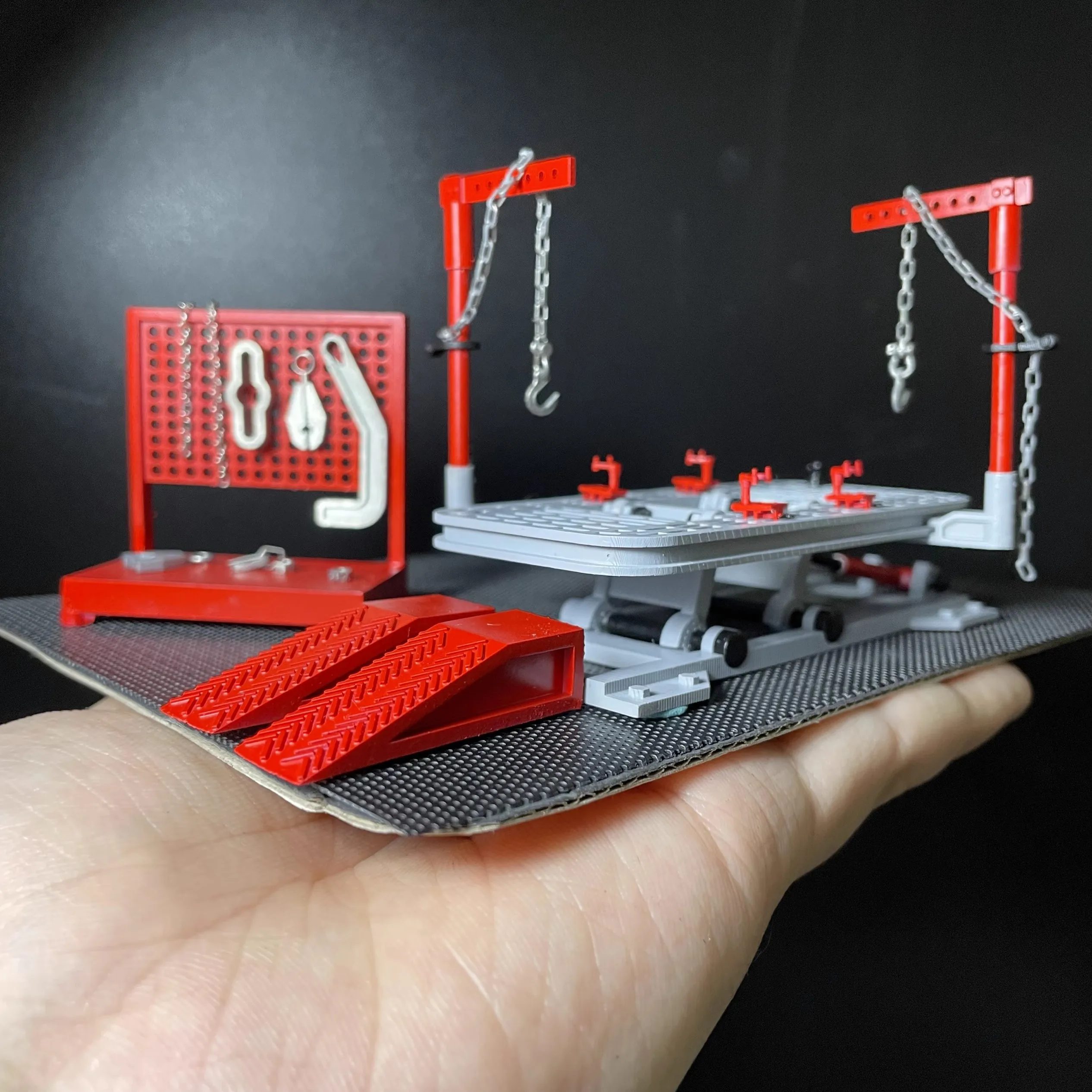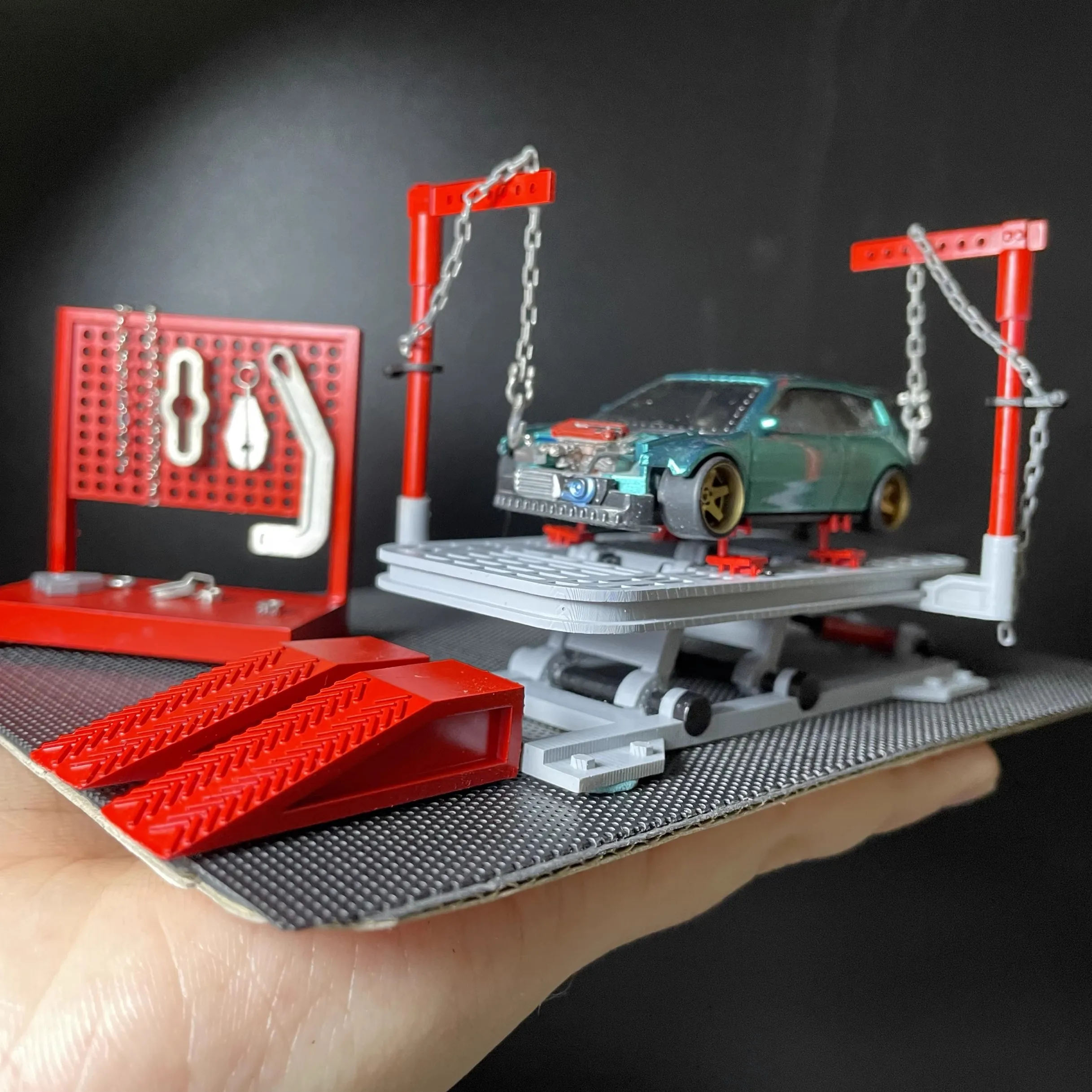 Immerse yourself in a detailed automotive world with this exceptional model. Whether you're showcasing your collection or recreating the excitement of a garage, this table serves as the perfect centerpiece for any setup. Don't miss out on adding this realistic piece to your collection. Feel the adrenaline of car repairs as you set up your own garage scene today!