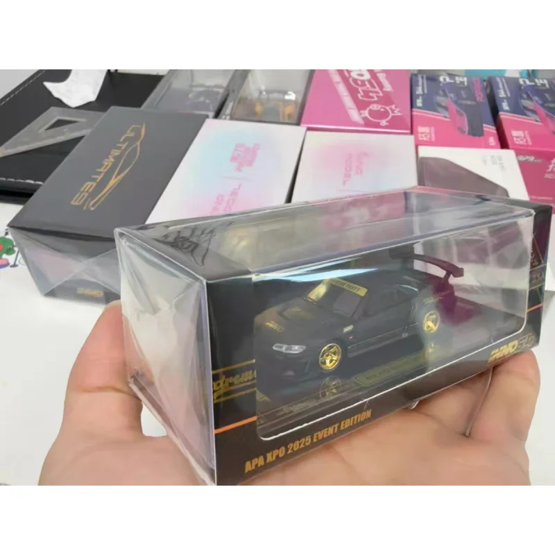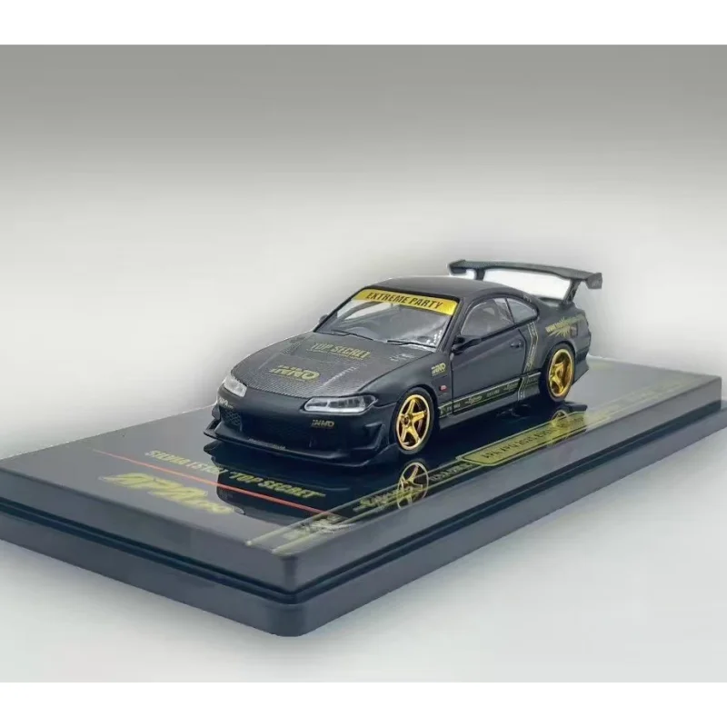 Step into the world of high-performance car collectibles with this meticulously crafted 1:64 scale die-cast miniature of the iconic Nissan Silvia S15. Designed for adult enthusiasts, this model captures the sleek, sporty essence of the original with an aerodynamic body painted in striking black, complemented by bold decals featuring “LIVE,” “EXTREME,” and “UNO.” The model’s large rear spoiler and low stance emphasize speed and agility, perfect for display on your shelf or desk. Its gold multi-spoke wheels create a high-contrast, luxurious appearance that makes the miniature stand out. Durable alloy construction ensures longevity while maintaining a lightweight feel. This collectible allows you to own a piece of racing-inspired automotive art that embodies power, style, and excitement.