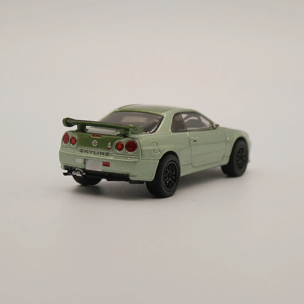 Enhance your collection or home décor with this stunning replica of the Nissan Skyline GT-R (BNR34). Whether adding to an existing collection or seeking a unique display piece, this die-cast model offers authentic style and exceptional craftsmanship. Its vintage-inspired pastel green finish, combined with intricate detailing, makes it an eye-catching addition to any space. Don't miss out on owning a piece of automotive history—secure this collectible today and enjoy the admiration it brings as a conversation starter or cherished display item.