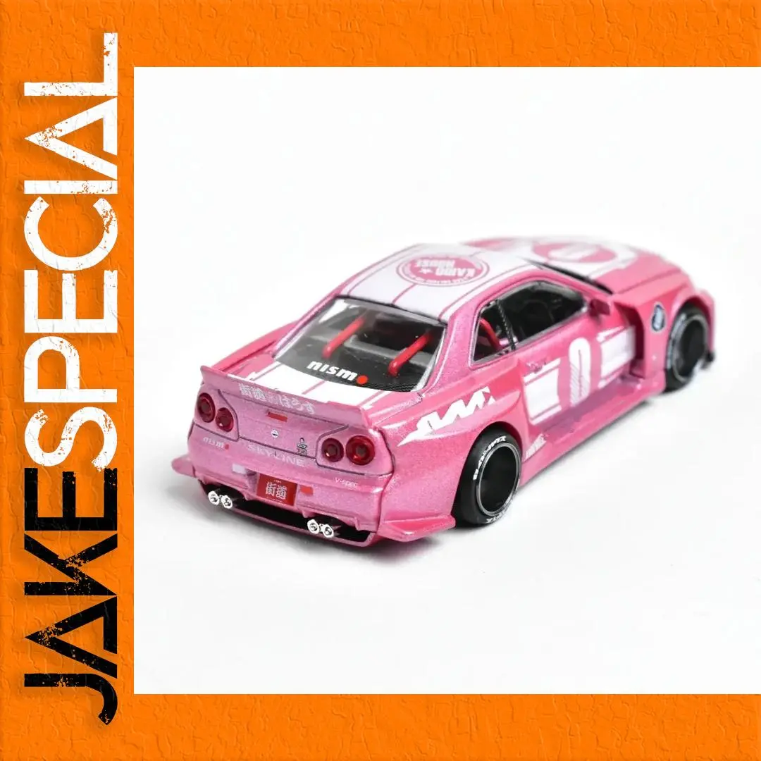 This stunning 1:64 scale diecast model of the Nissan Skyline V1 by TSM MODEL is sure to capture your heart. Drenched in a vibrant pink, this model features a glossy finish that highlights its impeccable design. You'll be drawn in by the eye-catching decals, sleek body lines, and sporty black wheels that make it a must-have for any collector. With a detailed interior showcasing black and red racing seats and realistic rear lights, this model car is perfect for display. The expertly crafted diecast material gives it a satisfying weight and texture, working beautifully to accentuate the attention to detail. Imagine showcasing this beauty in your collection!