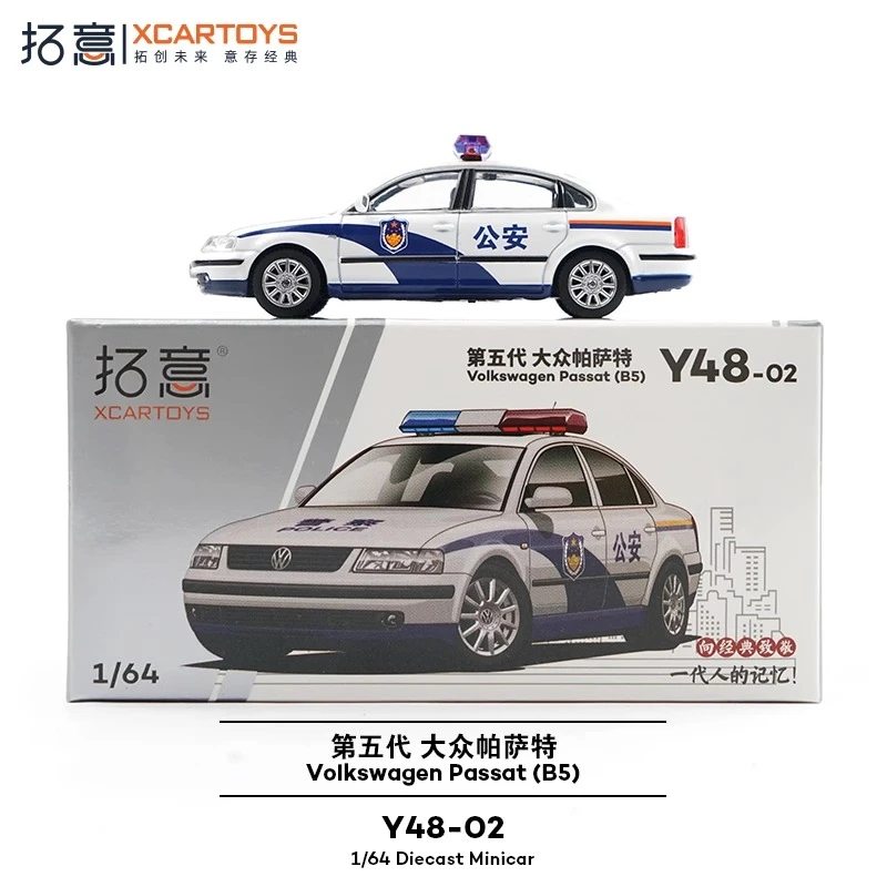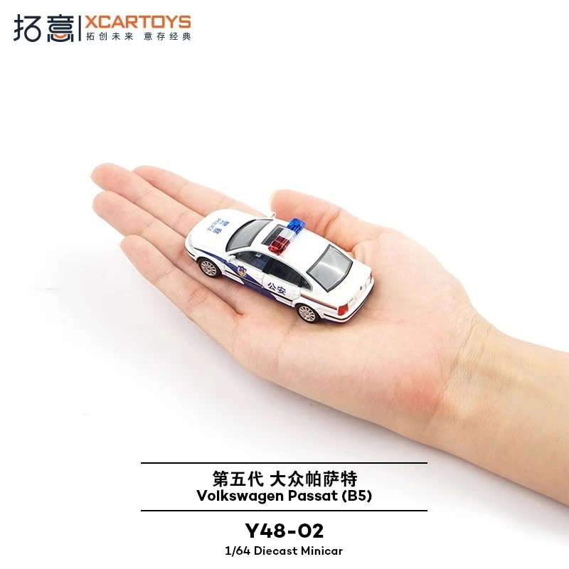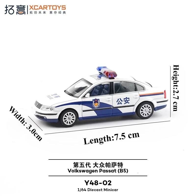 Step into the world of collectible miniature cars with this meticulously crafted 1:64 scale diecast police sedan. Designed for enthusiasts and collectors, this model immediately captures attention with its vivid white finish, accented by bold blue markings and realistic police insignia (公安) on the doors. The model's sleek, smooth contours resemble a real vehicle, with detailed features such as a precise front grille with horizontal slats, transparent headlights, and a distinct light bar with red, clear, and blue sections on the roof. Its patterned rims, small side mirrors, and subtle door handles enrich the authenticity. Lightweight yet durable, it’s perfect for display or imaginative play.