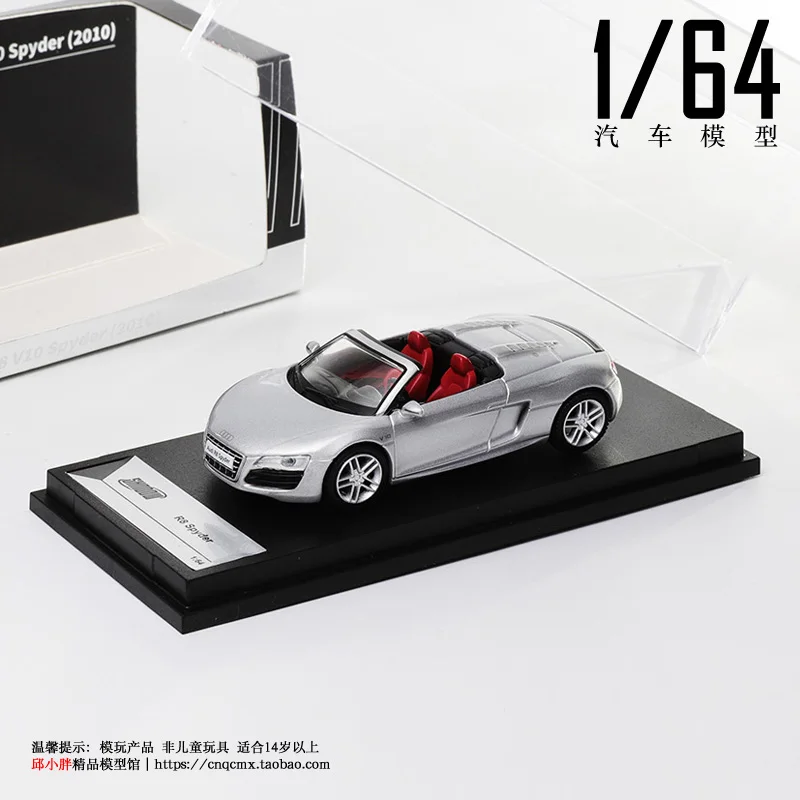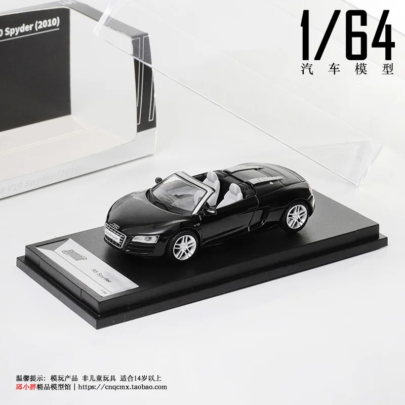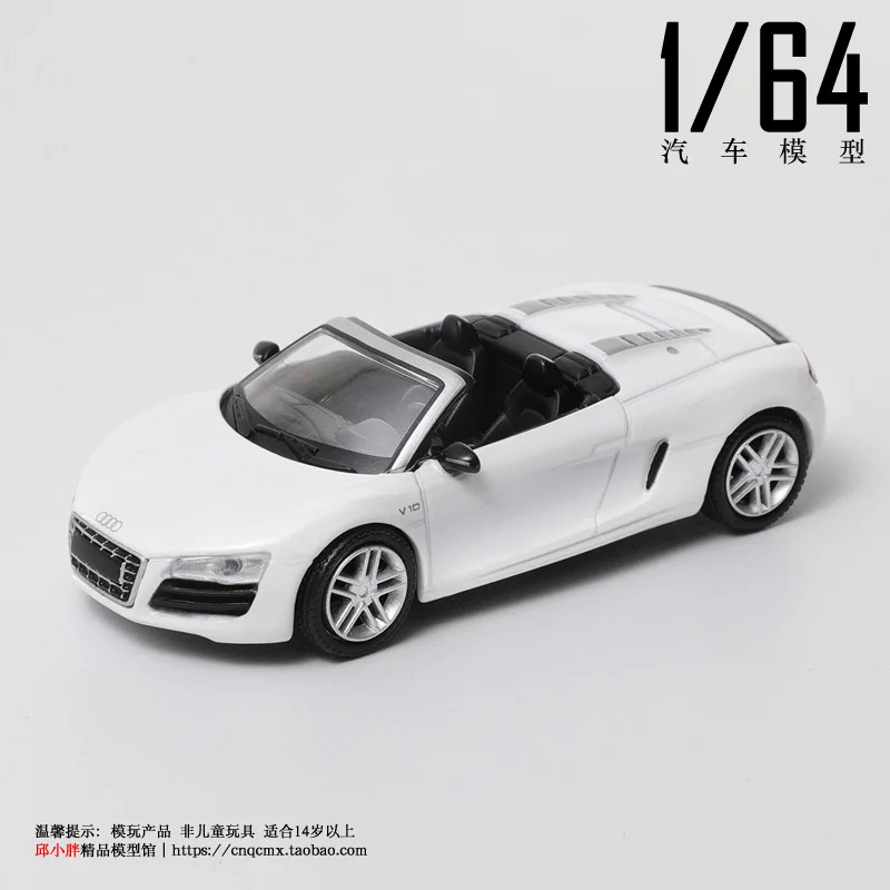 - Scaled at 1:64, accurately representing the R8 V10 Spyder's proportions for authenticity and realism.