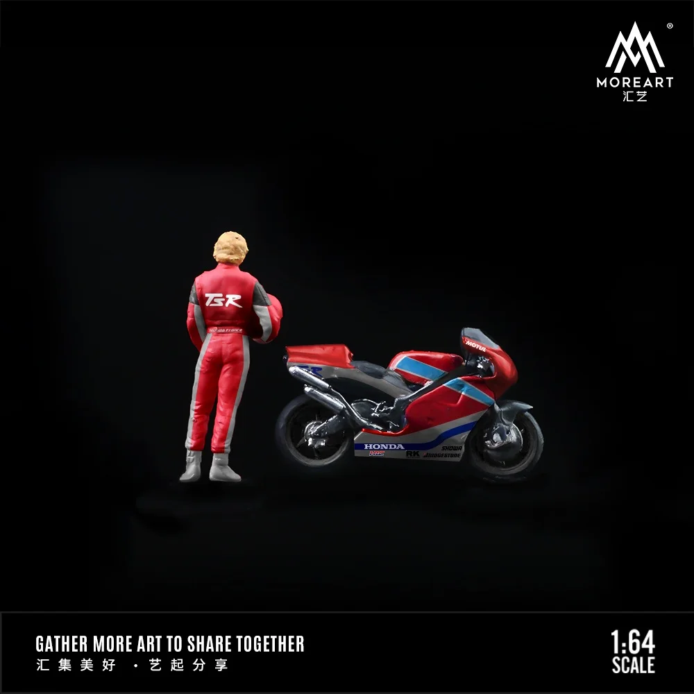 - Detailed figurine of the motorcyclist in a matching red racing suit with white and black accents, crafted in resin to offer durability and authenticity for collectors.