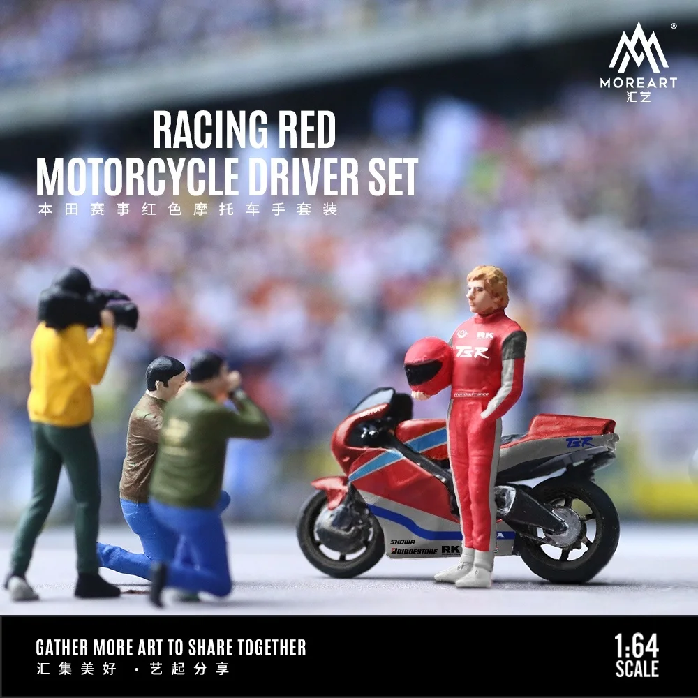 This Realistic 1:64 Scale Race Red Motorcycle Set
