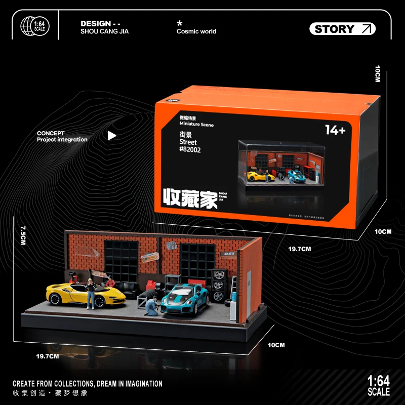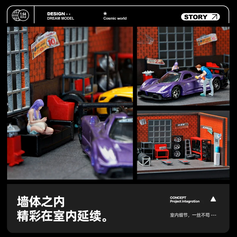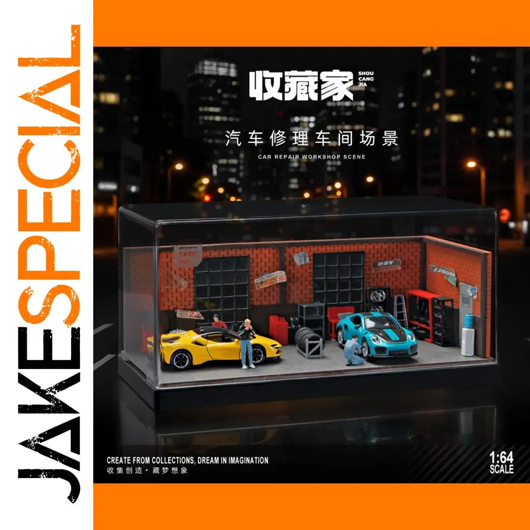 - This 1:64 scale diecast model is crafted from durable metal, offering a sturdy and collectible miniature scene that captures the lively atmosphere of a real repair workshop environment.