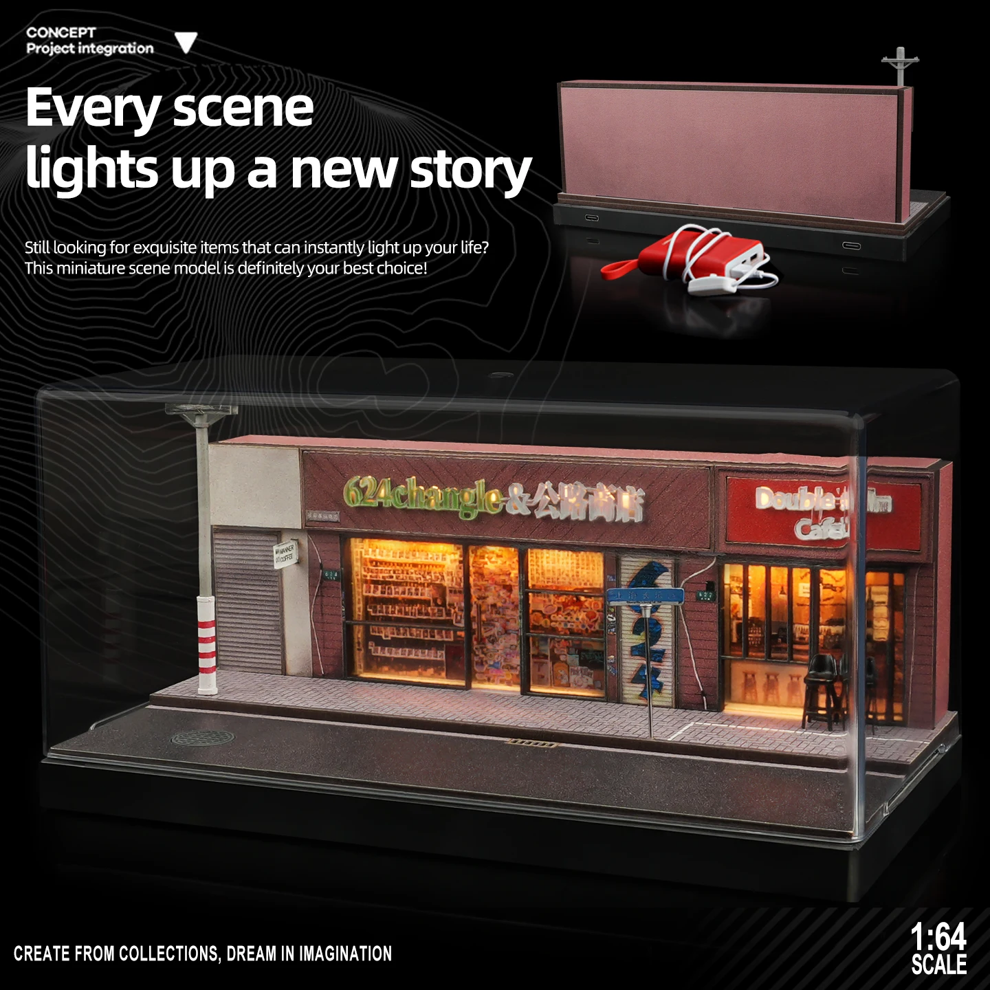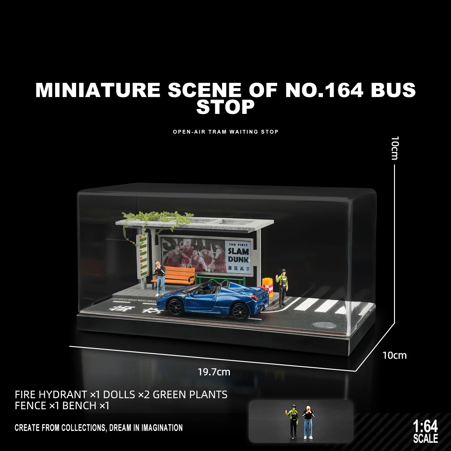 - Designed with attention to detail, the scene features textured dark flooring representing concrete, banners and posters on the walls, and scale-appropriate tools for a true-to-life workshop ambiance.