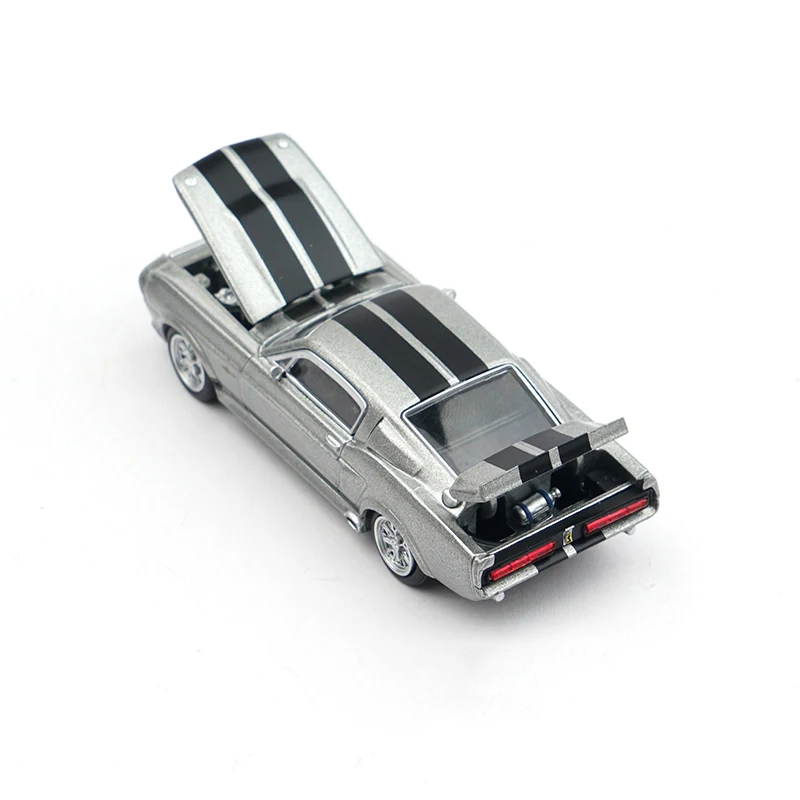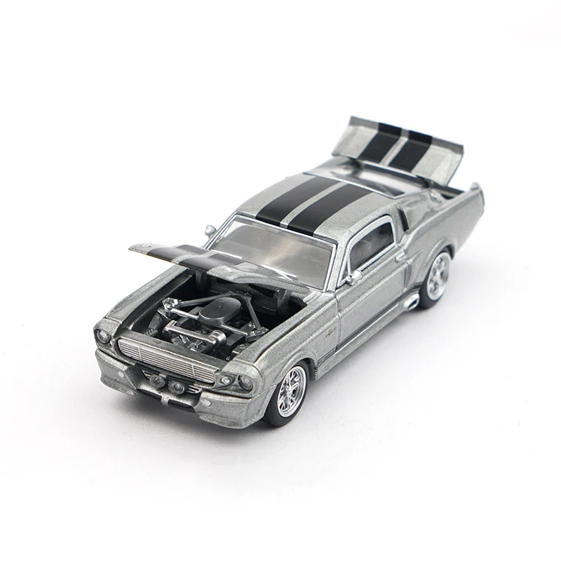 The Shelby Mustang GT500R model car is a stunning 1:64 scale die-cast miniature that captures the essence of classic muscle cars. With a striking shiny silver metallic finish and dual black racing stripes, it presents a sporty yet polished look. Admire the smooth curves and aerodynamic design, which is complemented by intricate wheel detailing and realistic treads. This model also showcases an iconic Ford grille with clear headlights, exemplifying the beauty of automotive craftsmanship. Made from durable metal and alloy, it appeals to both collectors and fans of the iconic Mustang heritage. Bring home this exceptional piece to add to your collection and relish the craftsmanship.