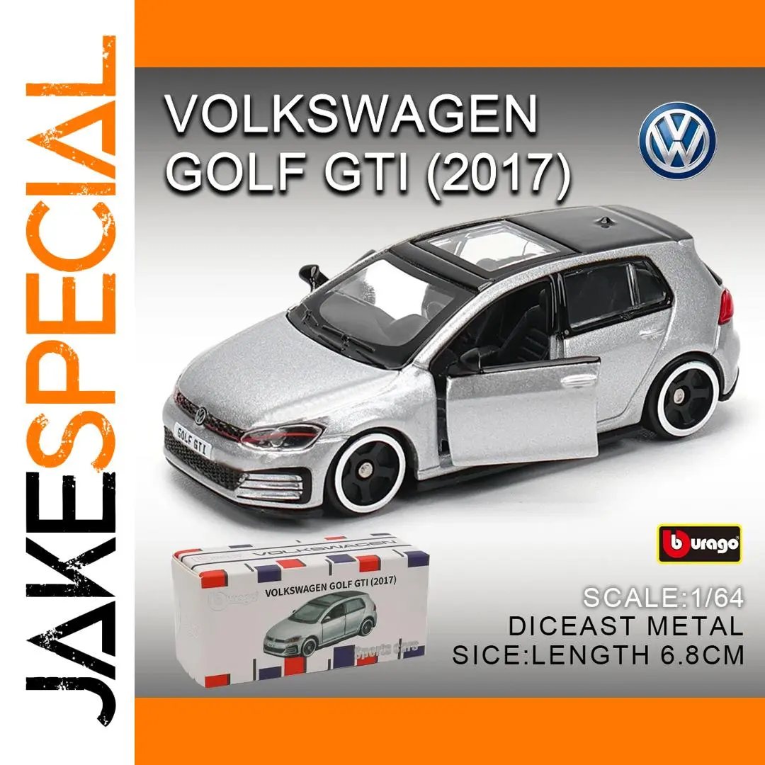 Experience the thrill of the Volkswagen Golf GTI 2017 with this highly detailed 1:64 scale diecast model by Bburago. Crafted from zinc alloy and environmentally friendly ABS plastic, it features realistic rubber tires, smooth mechanical wheels, and a sleek metallic silver finish complemented by black accents on the roof, side mirrors, and grille. The model showcases precise details, including clear headlights with red-tinted accents and red-highlighted tail lights, capturing the sporty essence of the original. Packaged in an original box, this non-electric collectible is CE certified (GZHH00343725) and perfect for adult collectors and enthusiasts, bringing dynamic automotive realism to your display.