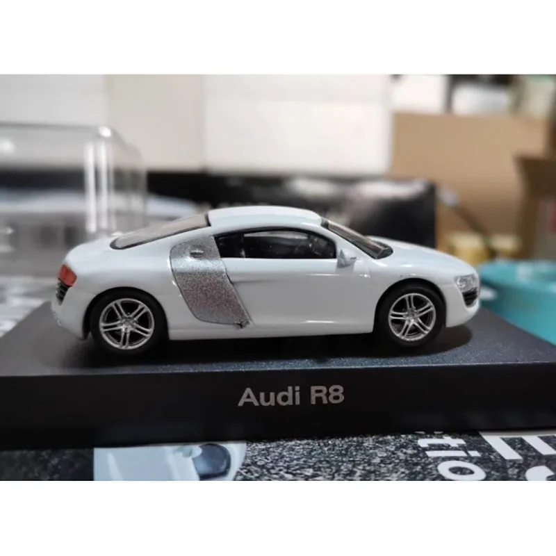 Experience the sleek sophistication of the 1:64 scale diecast alloy car model, capturing the essence of the R8 and TT Roadster with meticulous detail. Crafted from durable metal, this non-electric collectible features realistic design elements, including a glossy white finish, dark tinted windows, a distinctive black grille with the four-ring logo, slim modern headlights, and high-quality multi-spoke alloy wheels with small tires. The low, curved roofline and aerodynamic silhouette evoke sporty elegance, making it an ideal addition for adult collectors and enthusiasts. Perfectly proportioned and precisely crafted, this model brings the thrill of high-performance supercars into your display collection.