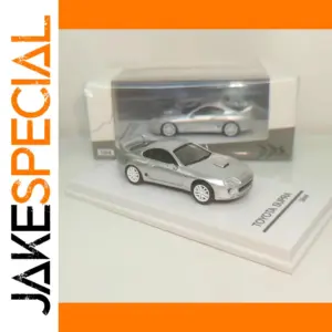 Experience the iconic sporty elegance of the 1:64 scale diecast Toyota Supra A80 with a sleek, metallic silver alloy finish. Measuring approximately 7.5 cm in length, this static collectible features realistic details such as a curved roofline, bulging hood, integrated rear spoiler, detailed headlights, grille, and white multi-spoked alloy rims with black rubber tires. Crafted from alloy and plastic, it is perfect for display, gifting, or as a hobby ornament, capturing the Supra’s legendary design in a compact, premium model. Suitable for collectors aged 14 and up, this detailed model offers a refined, modern aesthetic of the legendary sports car.