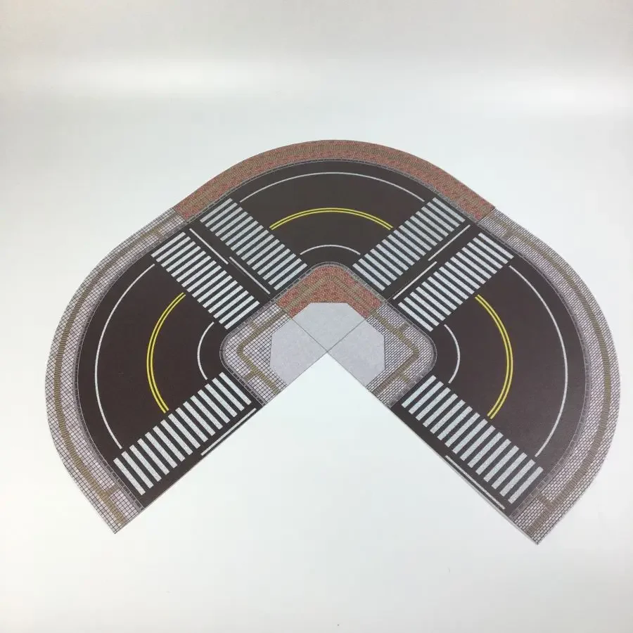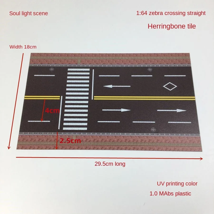 Bring your urban diorama to life with this highly detailed 1:64 scale highway simulation model, crafted from durable ABS plastic with UV-printed resin road surfaces. It features realistic road markings, including white lane dividers, dashed lines, double yellow center lines, and prominent crosswalks with white stripes. The scene showcases textured asphalt-like finishes, patterned brick pavements, and vibrant green grassy areas, adding visual depth and authenticity. Includes miniature buildings with colorful windows, enhancing your miniature cityscape. Designed for hobbyists 14 and above, this versatile unisex model combines realistic details, precise proportions, and multiple color options to create stunning miniature urban environments.