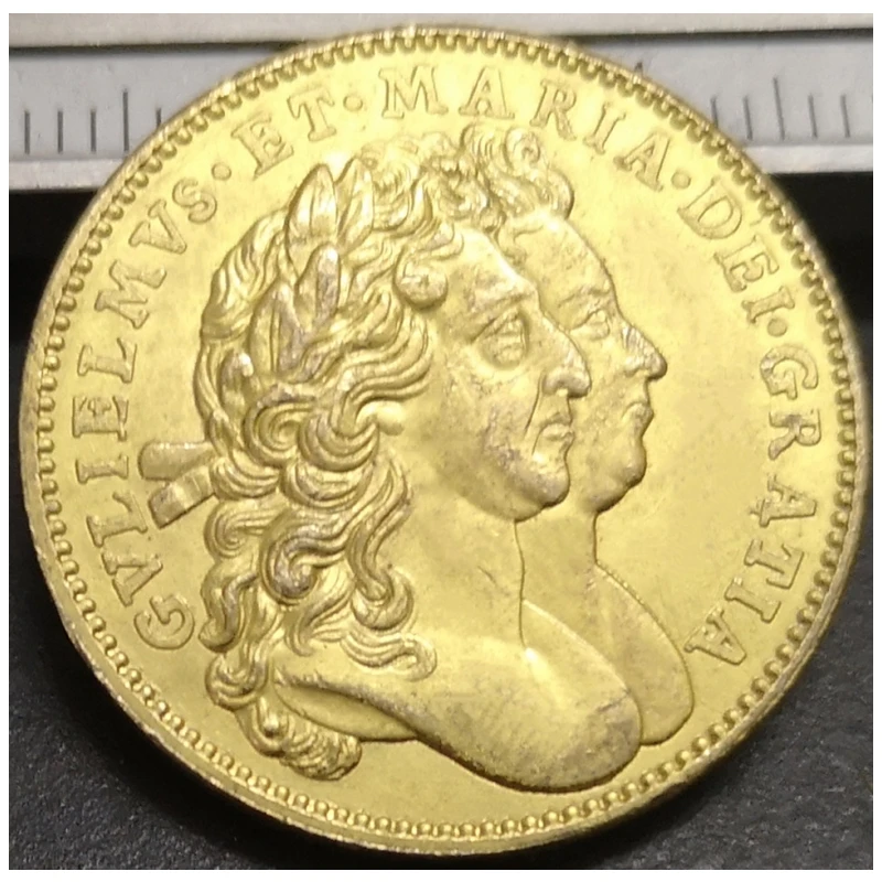 - Diameter matches the original 1691 coin, with detailed reliefs of Queen Mary’s profile facing right, and King William slightly behind, reflecting actual historical portraiture and producing an authentic appearance.
