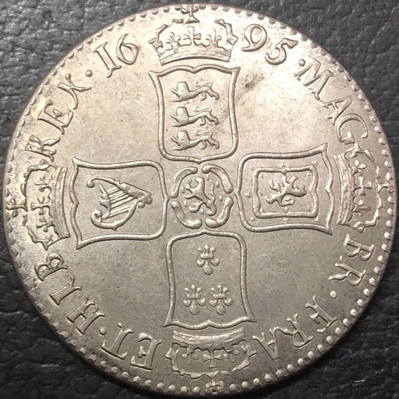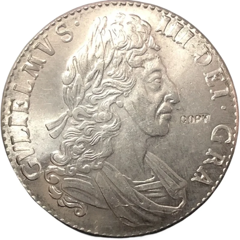 Imagine owning a piece of history with this finely crafted replica of the 1695 England 1 Crown, featuring William III. Crafted with rigorous attention to detail, this coin exudes an antique European charm through its silver-tone, aged appearance, and intricate casting techniques. The detailed portrait of William III, complete with curly hair, laurel wreath or crown, and finely etched facial features such as a prominent nose and mustache, brings history to life. Encircled by raised inscriptions and finished with a dotted border, this coin combines vintage superb craftsmanship and classical motifs. Its weathered look and detailed line work make it a stunning collector’s piece, perfect for display or adding a touch of history to your collection.