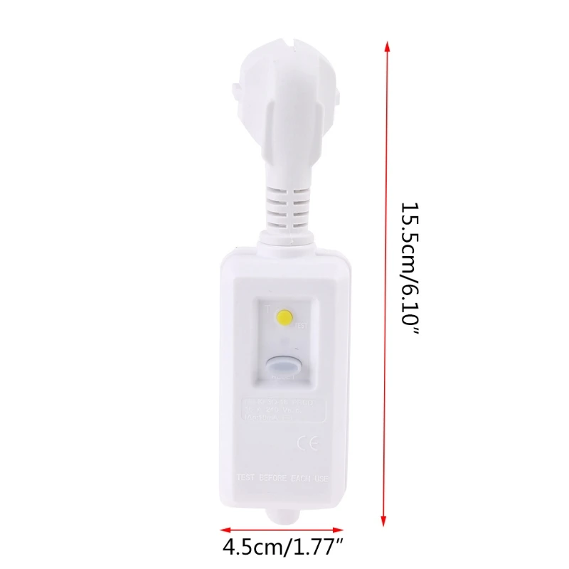 Imagine effortlessly enhancing your home safety with this sleek 16A leak-proof waterproof RCD/PRCD plug, expertly designed for electric water heaters, washing machines, refrigerators, and microwave ovens. Measuring approximately 4.1 x 14 cm (1.61 x 5.51 in), its compact and modern white design seamlessly integrates into any environment. With rapid response capabilities, this innovative plug automatically powers off within 0.1 seconds to prevent electric shock, providing peace of mind for you and your loved ones. Crafted from durable rubber and ABS materials, this plug promises reliability and protection against electrical surges or leaks, making it an essential device for your household appliances.