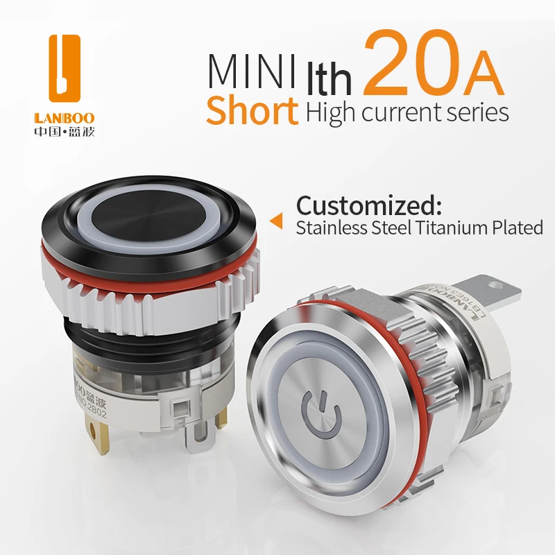 Experience the high durability and sleek design of this 16mm high-current metallic push button switch, perfect for industrial and electronic applications. Its stainless steel, aluminum oxide, or copper-plated construction offers resistance to water, dust, corrosion, and extreme temperatures up to 80°C. Whether you need a latching or momentary operation, this switch provides reliable performance with a rated current of 16A at AC110V/220V and DC12V/24V. The illuminated options—red, green, blue, yellow, or unlit—feature bright LEDs running from 3V to 250V, making visual status indication effortless. Its IP65 rated waterproof and dustproof design, combined with a robust mechanical life of hundreds of thousands of operations, ensures long-lasting use in demanding environments. Customize your setup for ultimate control with this versatile switch.