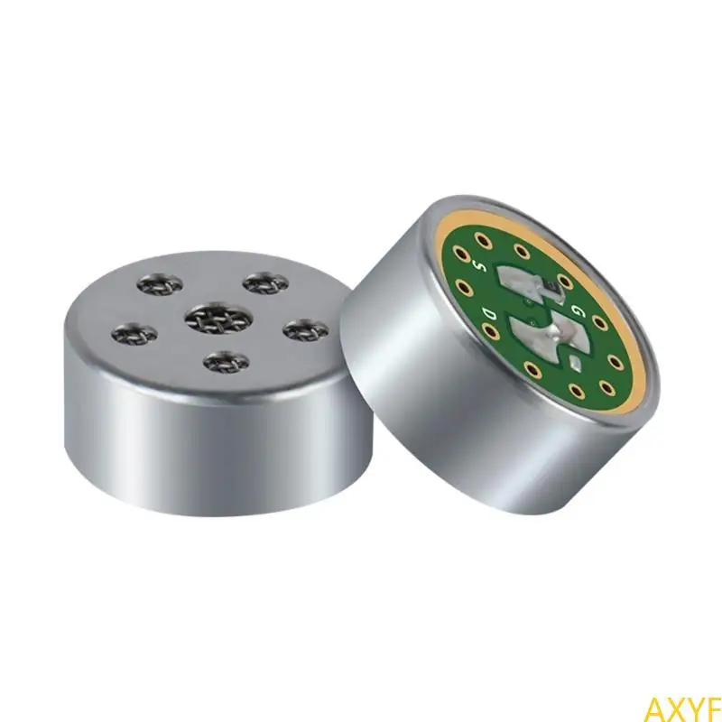 Experience exceptional voice pickup with this advanced electret condenser microphone core, meticulously crafted for professional use. Its sleek, cylindrical design, measuring approximately 14mm in diameter and 6.5mm in height, offers a compact and efficient solution for integrating into gooseneck microphones. Made from durable metal with a smooth, metallic silver finish, it combines functionality with a high-tech aesthetic. The top features a vibrant green printed circuit board (PCB) with precisely arranged gold-plated contact pads and mounting holes, emphasizing high-quality construction. Designed for accurate sound reproduction, it delivers a flat frequency response up to 20 kHz, providing clear, detailed audio even in noisy or low-volume environments. Ideal for conference rooms, online meetings, and professional audio systems.