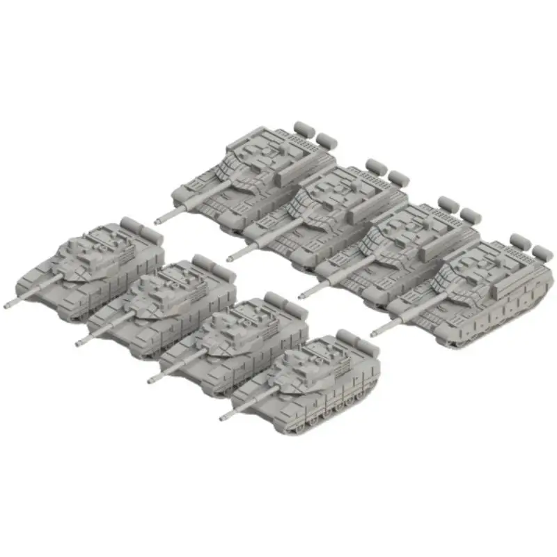 - Unpainted light gray or off-white finish emphasizing intricate sculpting details such as turrets, gun barrels, hatches, and textured hull surfaces that mimic real tanks.