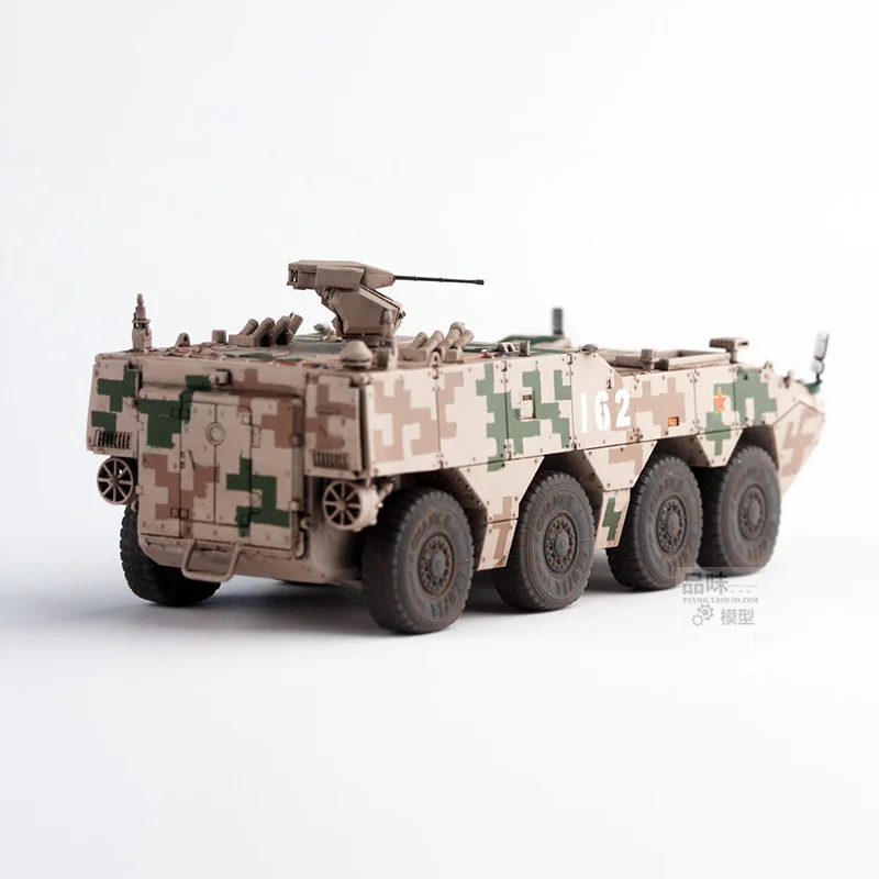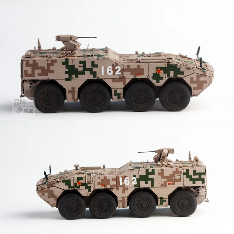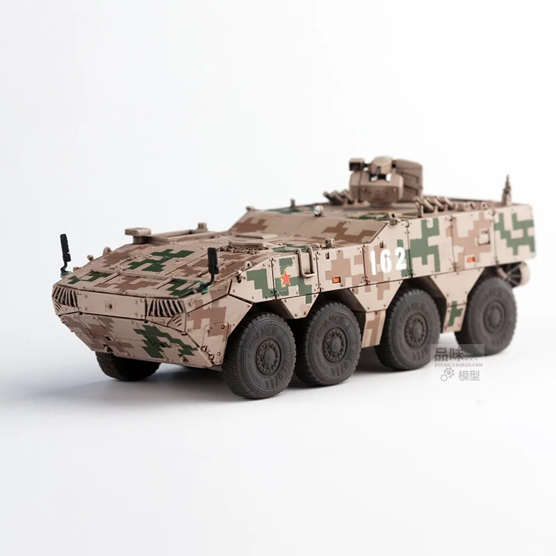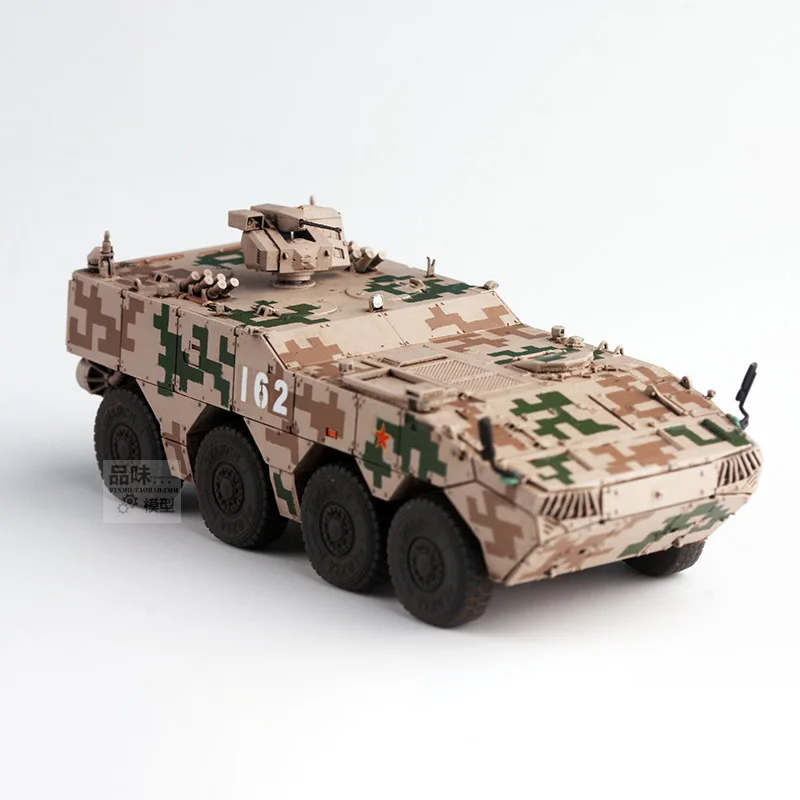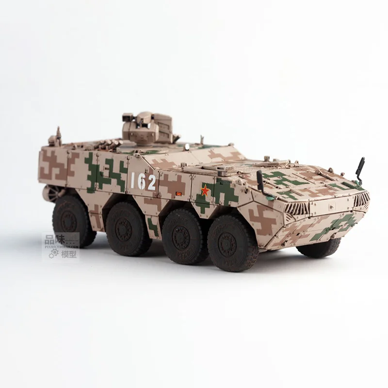 Step into the world of military precision with this highly detailed 1:72 scale resin model of the Chinese Type 19 wheeled infantry fighting vehicle. Perfect for enthusiasts and collectors, its realistic design captures a distinct angular silhouette with a low profile, painted in an authentic camouflage pattern of tan, beige, and light brown, accented by dark green patches. Every surface features finely crafted panel lines, vents, and grille details that enhance its military realism. The mounted turret with a slender barrel, complemented by hatches, periscopes, and antenna mounts, adds tactical authenticity. Rugged wheels with visible treads and precise surface textures complete this static display, making it an impressive addition to any collection or display case.