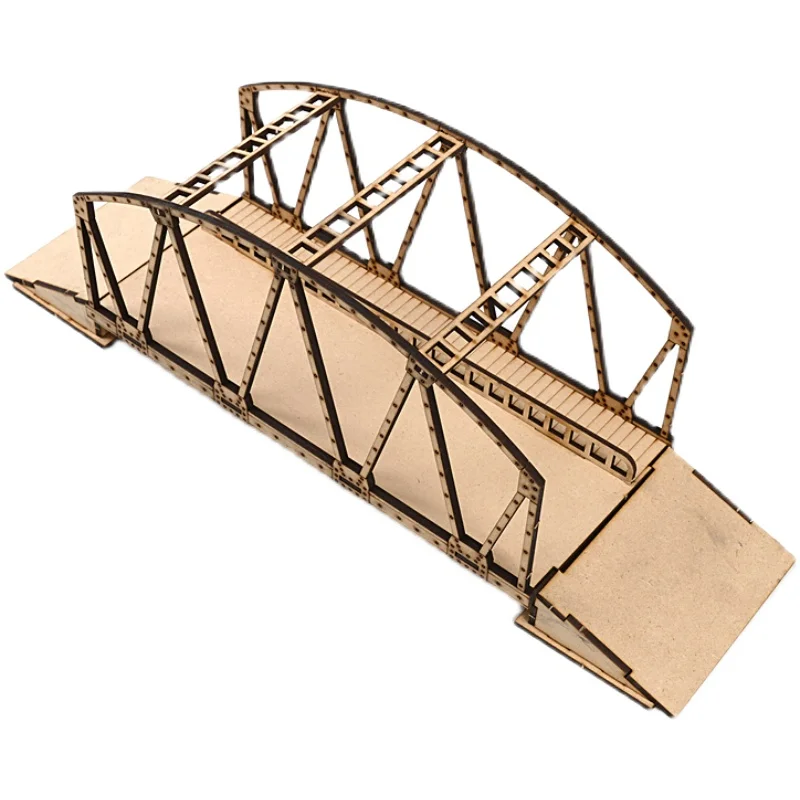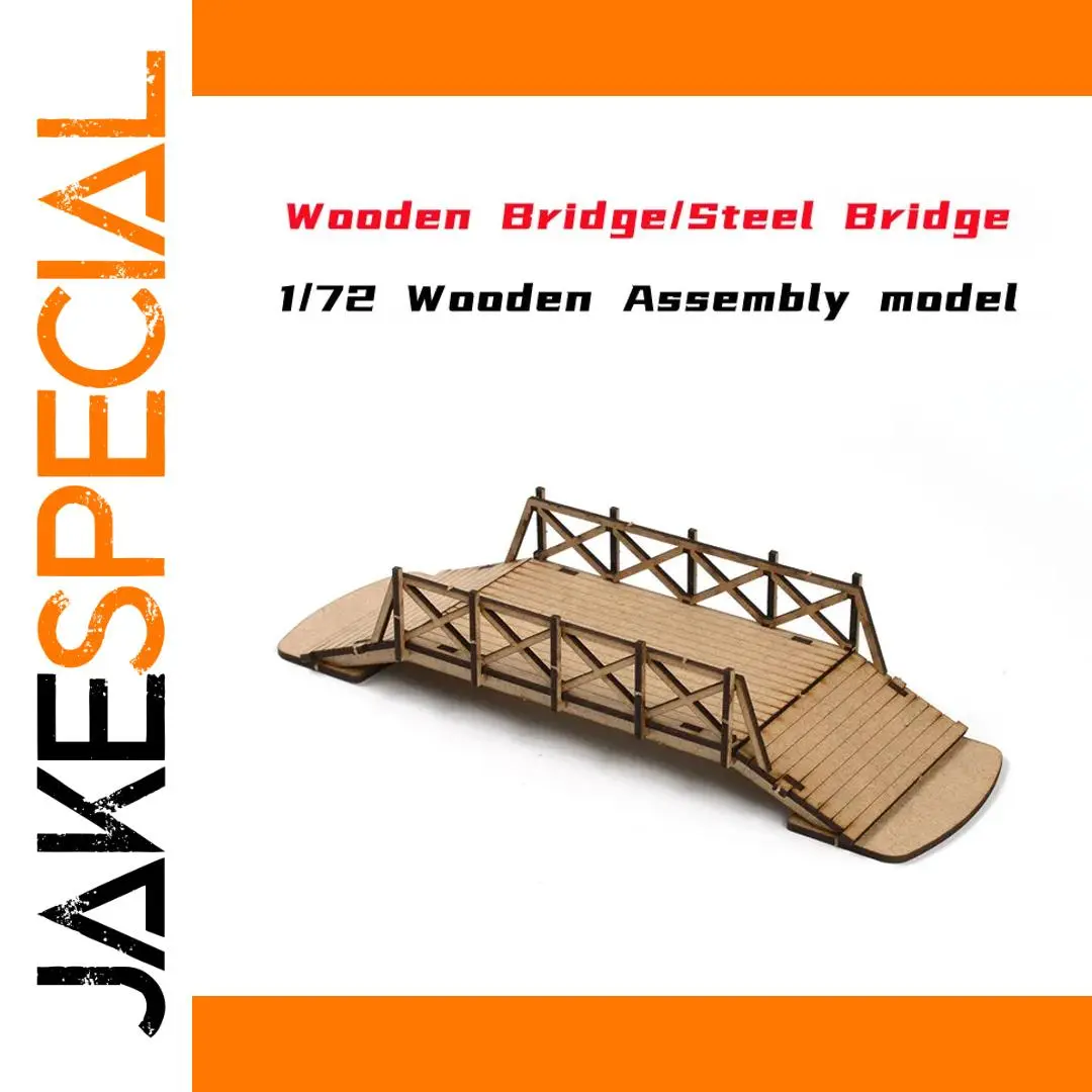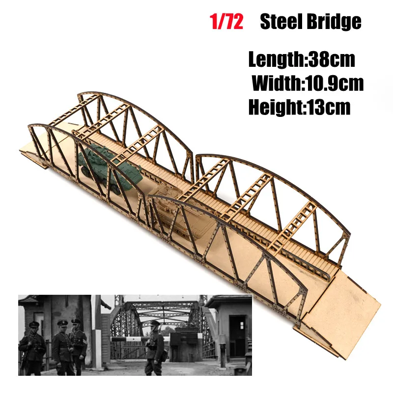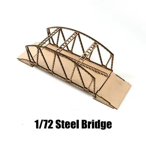 Imagine yourself enhancing your miniature scene with this exquisite 1:72 scale assembly model of a European wooden and steel bridge. Crafted with fine attention to detail, this set allows you to create authentic landscapes and detailed dioramas, bringing your miniature worlds to life. The natural light-brown wood finish highlights the textured grain, while the steel bridge option showcases a sleek, metallic appearance. The gentle, curved beam design paired with evenly laid horizontal planks provides a realistic walkway, complemented by elegant side railings with decorative diagonal supports. Perfect for model enthusiasts, this set invites you to build, customize, and enjoy a charming, rustic European aesthetic in your scenes.