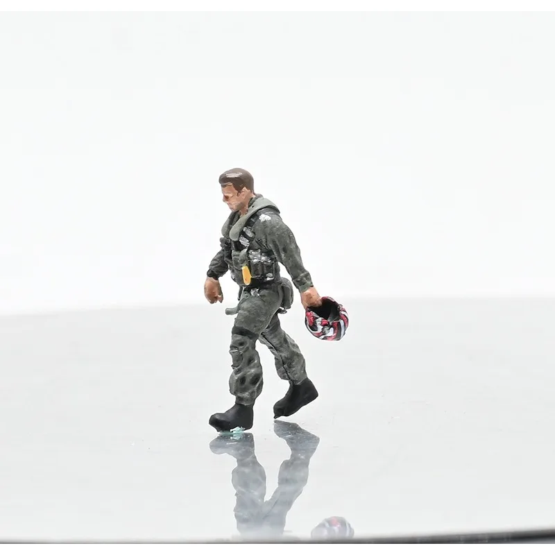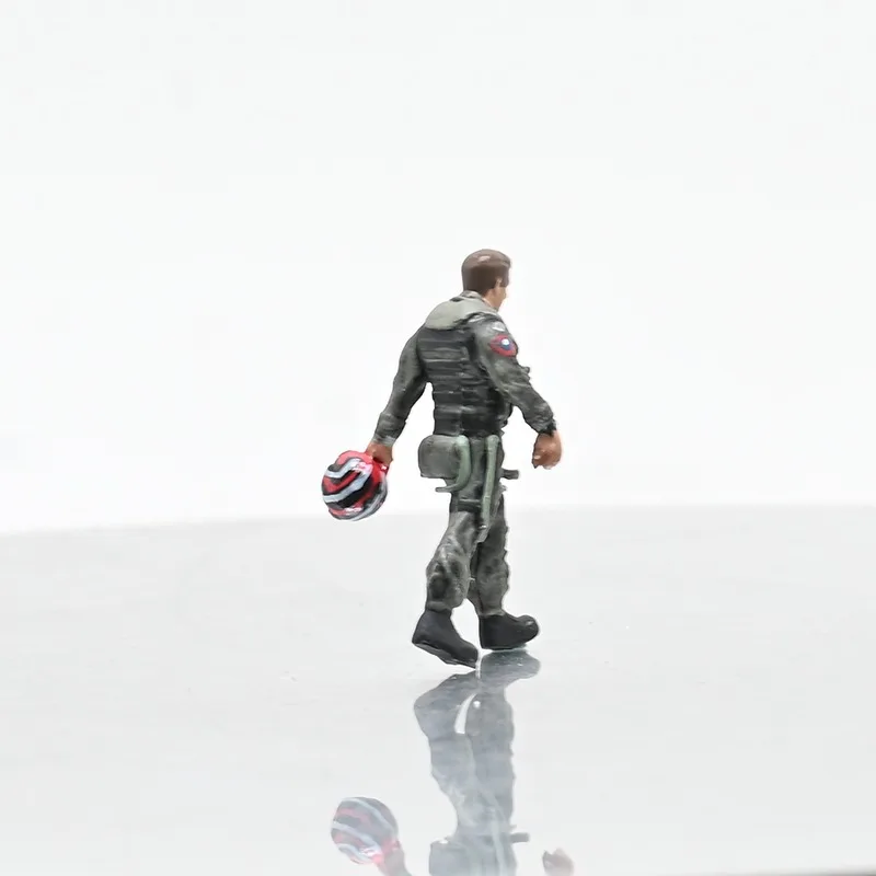 Imagine owning this highly detailed and lifelike 1:72 scale fighter pilot model, perfect for enhancing your aviation collection. Crafted from durable plastic, this miniature features meticulously painted details, including a sleek dark gray flight suit with accurate shading, textured padding, and seams. The pilot's helmet, decorated with bold red, black, and white decals, adds a realistic touch. Equipped with rotating wheels for added authenticity, this collectible ornament captures the spirit of Top Gun pilots with precision. Its sophisticated craftsmanship makes it an excellent display piece or gift for passionate hobbyists and collectors. Measuring approximately 4 cm tall, it perfectly balances scale and detail for an impressive visual effect. Elevate your collection today with this exceptional model.