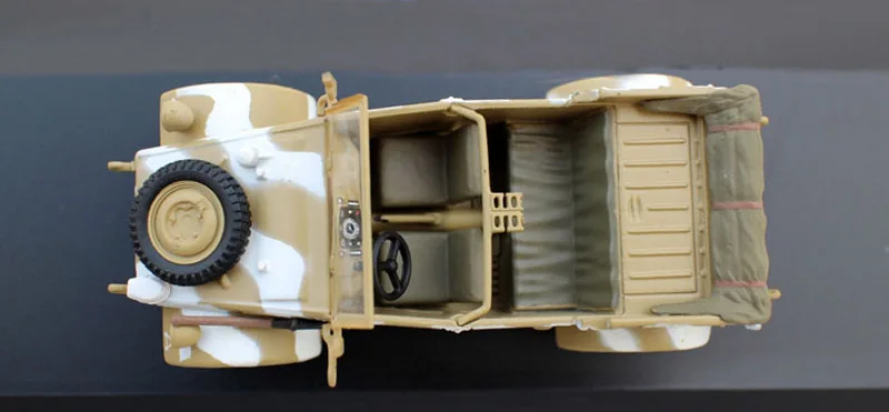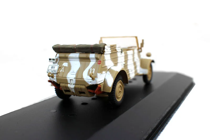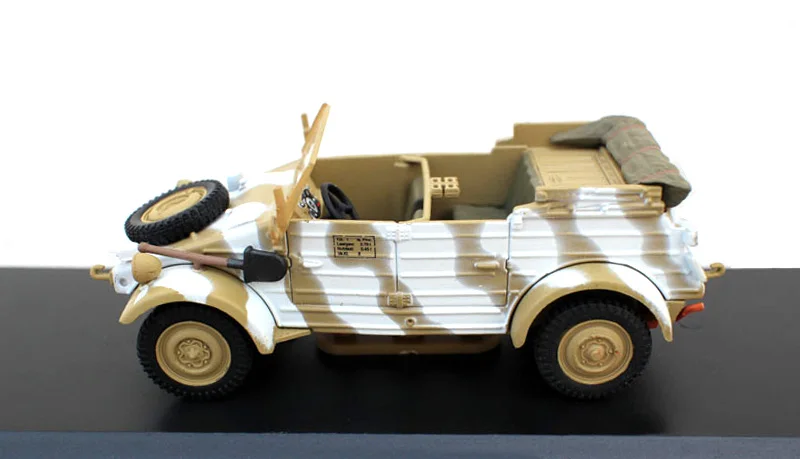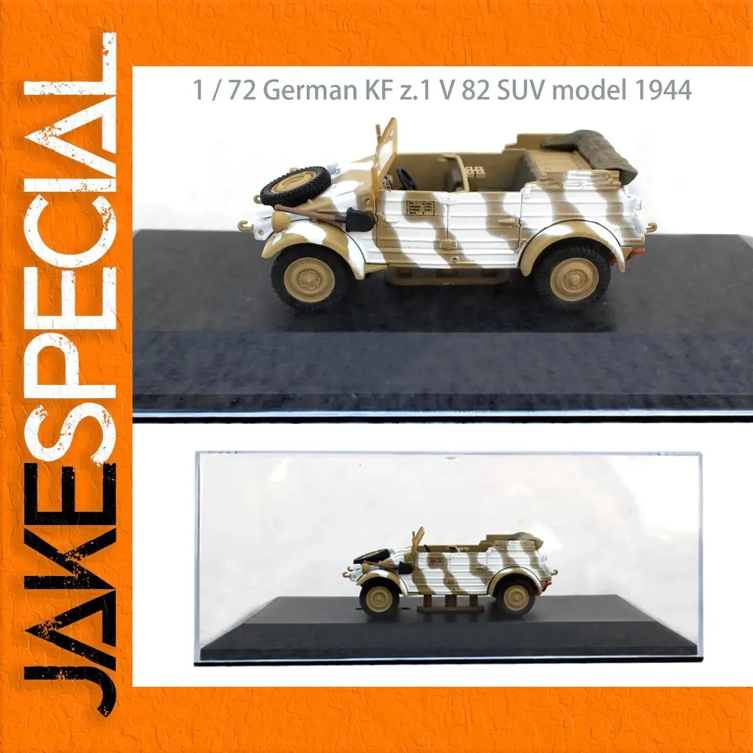 This exquisite 1:72 scale model of the German KF z.1 Typ 82 SUV from 1944 is a stunning collectible that will enhance your display. Meticulously crafted from diecast metal with plastic components, this model measures approximately 8.5 cm in length and features a captivating military camouflage pattern of white and beige stripes. Its open-top design showcases the detailed interior with visible dashboard and seat arrangements. Protected by an acrylic glass case on a solid black base, this model is perfect for collectors who appreciate historical precision and artistry. Display this remarkable piece in your home or office, and marvel at the high-quality details reminiscent of the original vehicle.