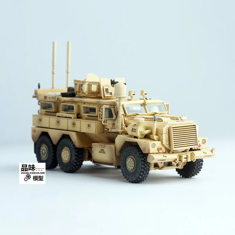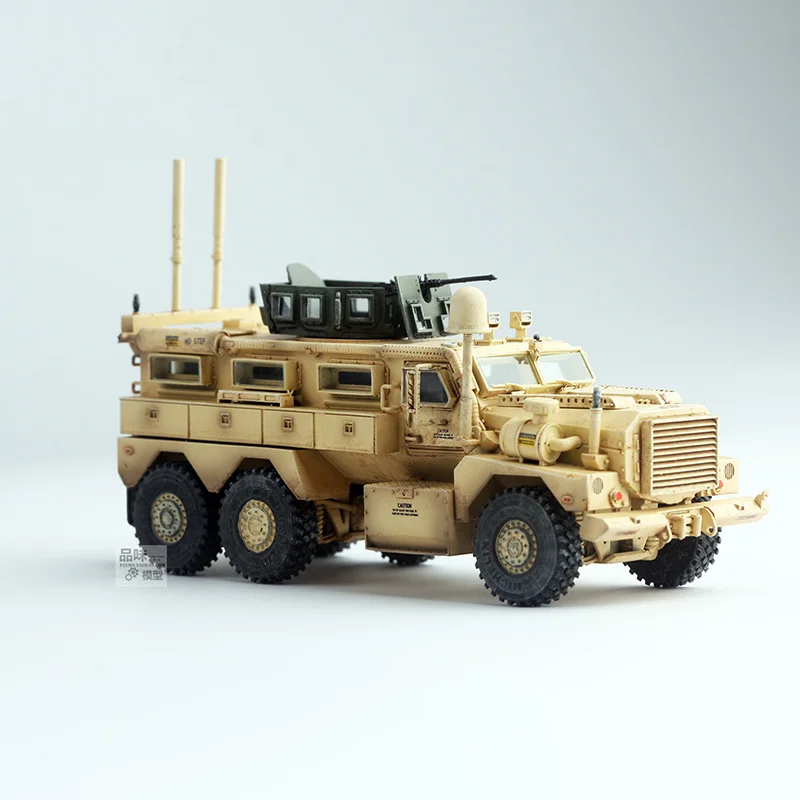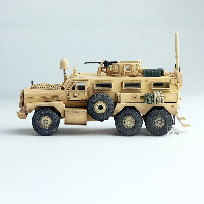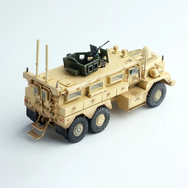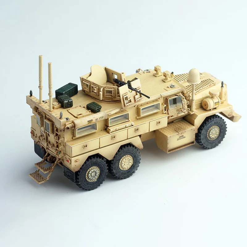Experience the impressive realism of this 1:72 scale resin model of the Cougar series anti-landmine and anti-ambush vehicle. Perfect for collectors and enthusiasts, this detailed static display captures the rugged, military-inspired design in a stunning beige or desert tan color. From the reinforced front grille to the intricately detailed exterior equipment and hatches, every element reflects authentic military craftsmanship. The model features large, deep-tread tires mounted on multi-axle assemblies, emphasizing off-road capability. With precise attention to small details such as communication antennas, sensors, and external compartments, this model offers a realistic and immersive display piece. Add a commanding presence to your collection with this meticulously crafted miniature of a durable military vehicle.