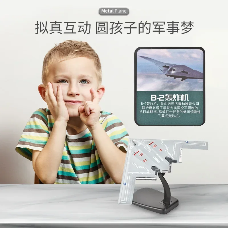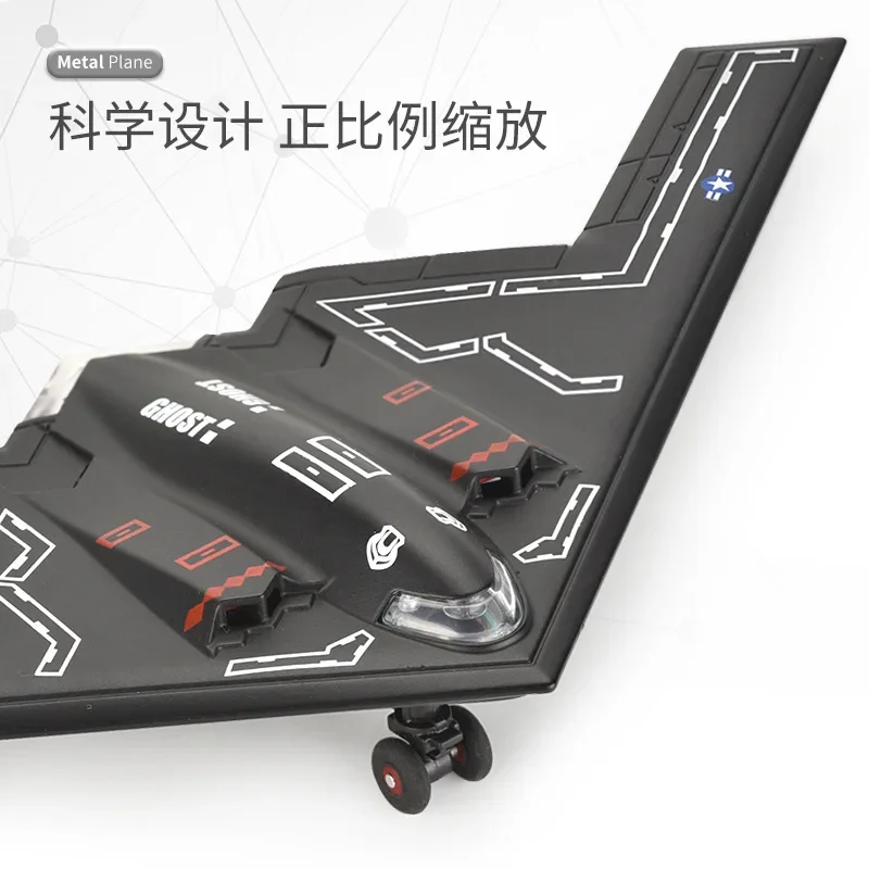 Imagine proudly displaying this stunning 1:72 scale diecast model of the B-2 Ghost Bomber in your collection. With its striking black and gray design, complete with a glossy finish, this model captures the essence of stealth aircraft beautifully. Its intricate details, such as bold cockpit markings and molded air intakes, enhance its authenticity, while the robust black stand allows for a dynamic upward display. This model features a pull-back mechanism that offers light and sound effects, creating an engaging experience. Every aviation enthusiast will appreciate the craftsmanship and attention to detail, making it the perfect educational or decorative piece for your home.