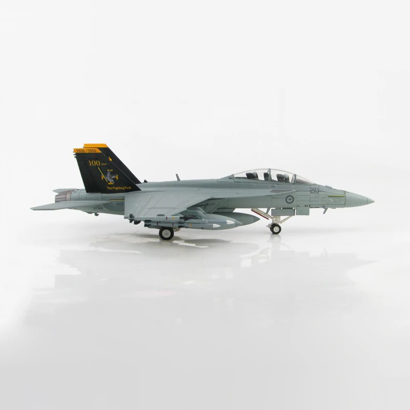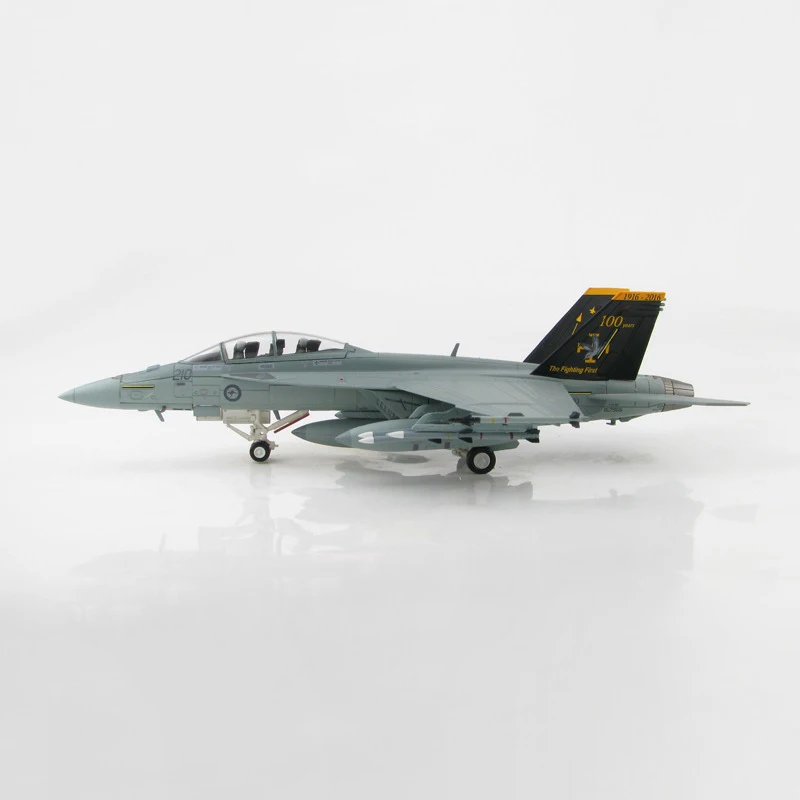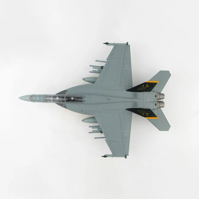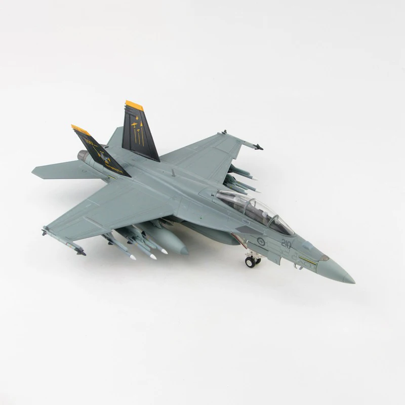 Enhance your collection with this meticulously crafted 1:72 scale diecast F-18F F/A-18F fighter aircraft model, made of durable metal and plastic. Featuring a sleek, aerodynamic design with sharply angled wings, prominent tail fins with black and yellow markings, and a clear cockpit canopy revealing detailed interior components, this model exudes realism and agility. Its smooth, polished surface highlights intricate panel lines and authentic surface details, making it an ideal display piece. Designed for collectors aged 14 and older, the model is a high-quality, fragile ornament intended for long-term preservation and display, capturing the essence of this iconic combat aircraft.