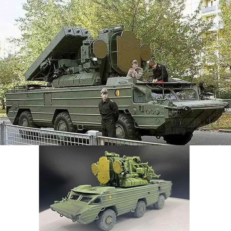 Bring a piece of military engineering history into your collection with this highly detailed 1:72 scale resin model of the Russian SAM-8 Gecko air defense missile system. Meticulously crafted, this static display captures the complex design of the missile launcher, including sleek, aerodynamic missiles with vibrant red tips and a robust support structure with panel lines and structural details. The model’s matte olive green finish enhances its authentic military aesthetic, making it a compelling centerpiece for display shelves or dioramas. Whether you’re a collector or a military enthusiast, this model offers an exceptional attention to detail and realism, allowing you to appreciate its engineering marvels at a miniature scale. It’s a perfect addition for display or as a thoughtful gift for model and military lovers.