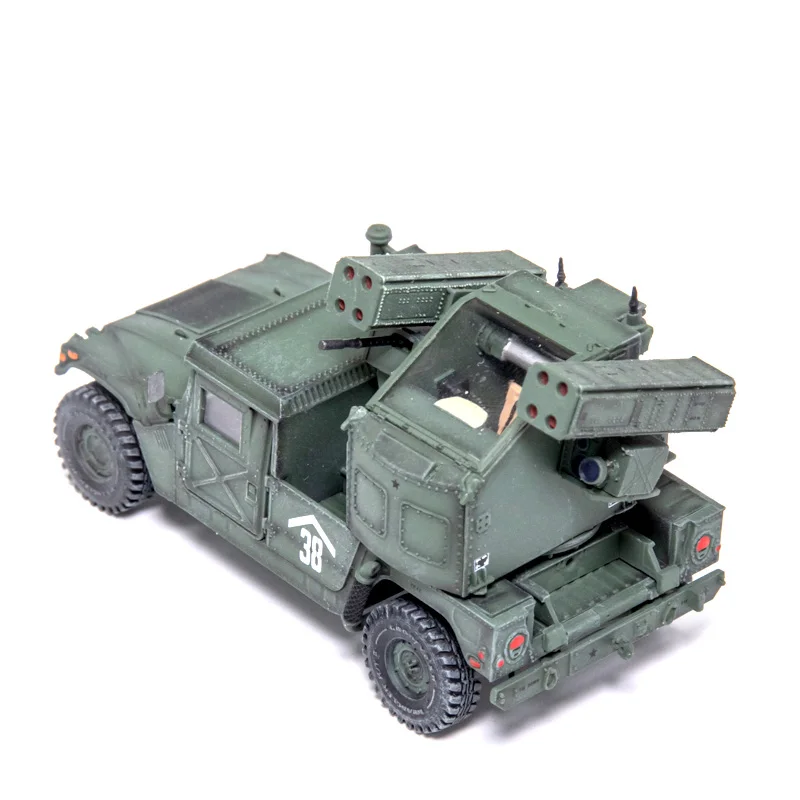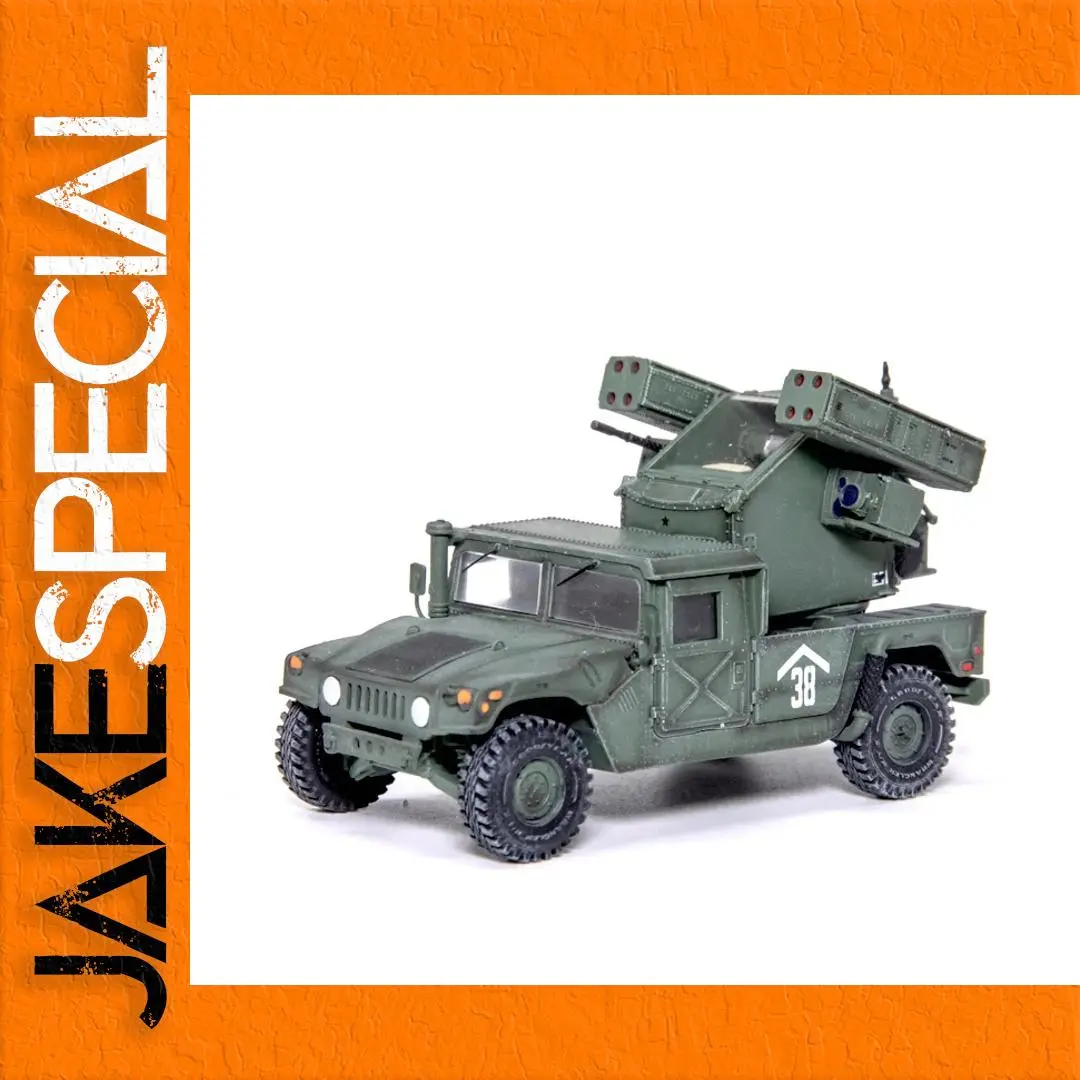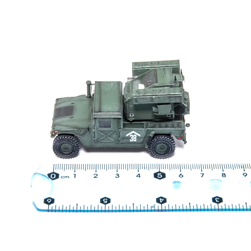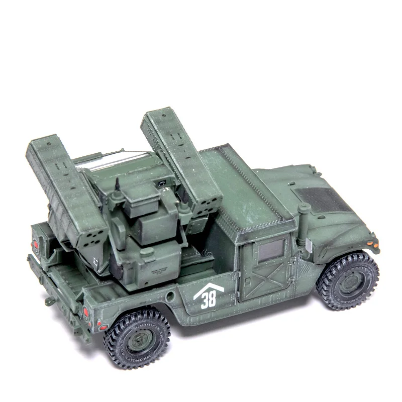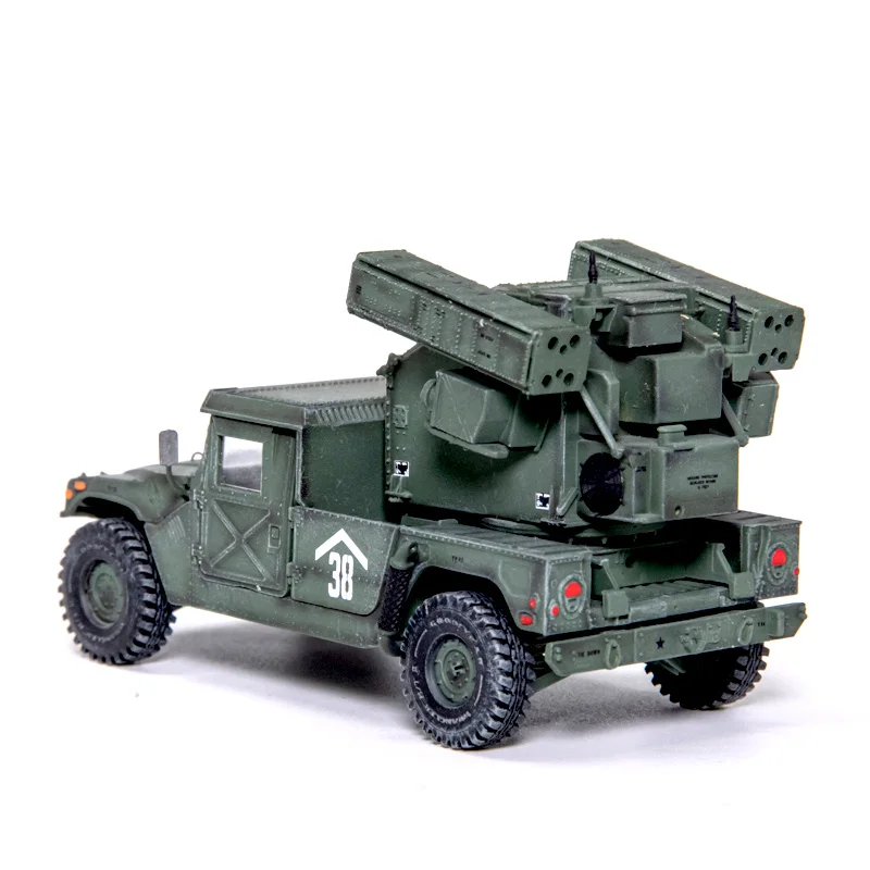 This stunning 1:72 scale model of the US Vehicle Mounted Frontier Area Air Defense Weapon is perfect for military enthusiasts and collectors alike. Finished in a military green that captures the rugged essence of battlefield vehicles, it's intricately designed to reflect authentic military aesthetics. The model features a robust four-wheeled chassis with textured off-road tires, alongside a detailed missile launcher in the rear, complete with vibrant red-capped tubes. Each aspect of the model, from the distinct headlights to the white numerical marking “38,” has been thoughtfully crafted to create an eye-catching display piece. Made from durable ABS plastic, this lightweight model is sure to impress.