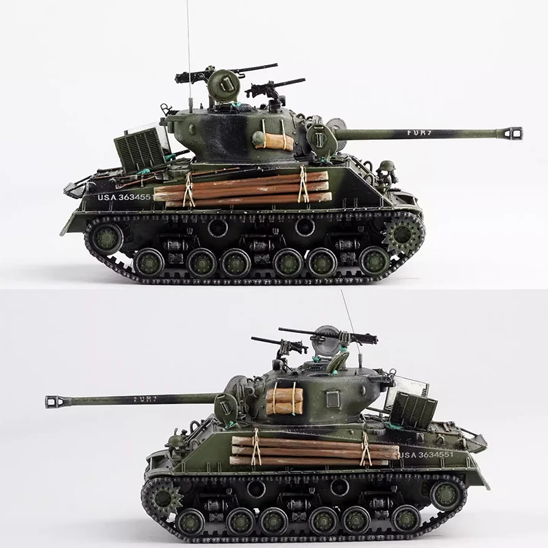 - Compatible for display with other scale models and perfect for enthusiasts wanting a detailed replica of the M4A3E8 Sherman tank at a manageable size.