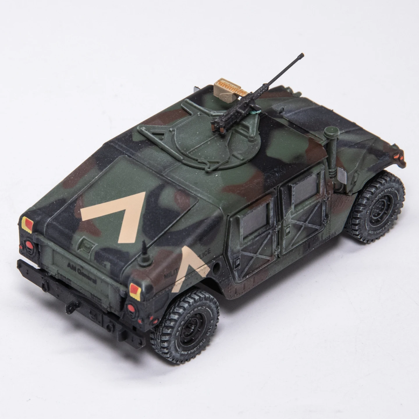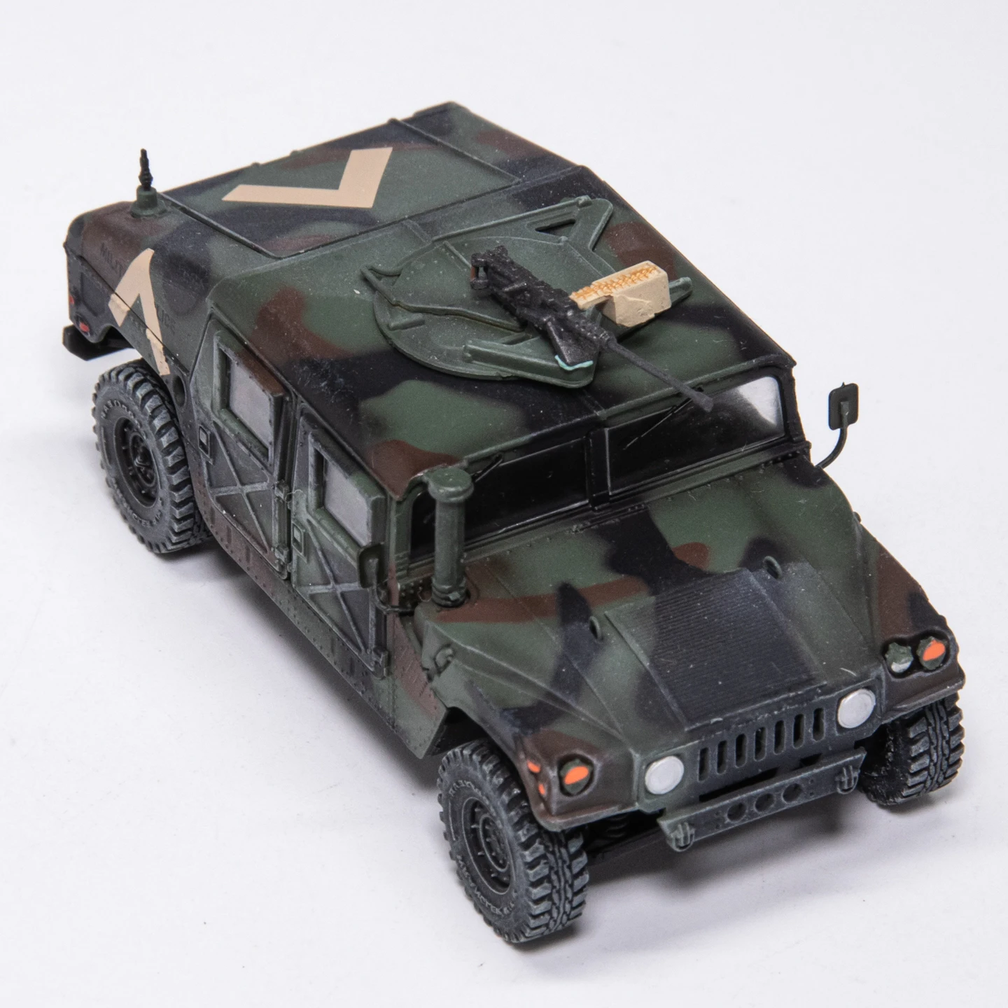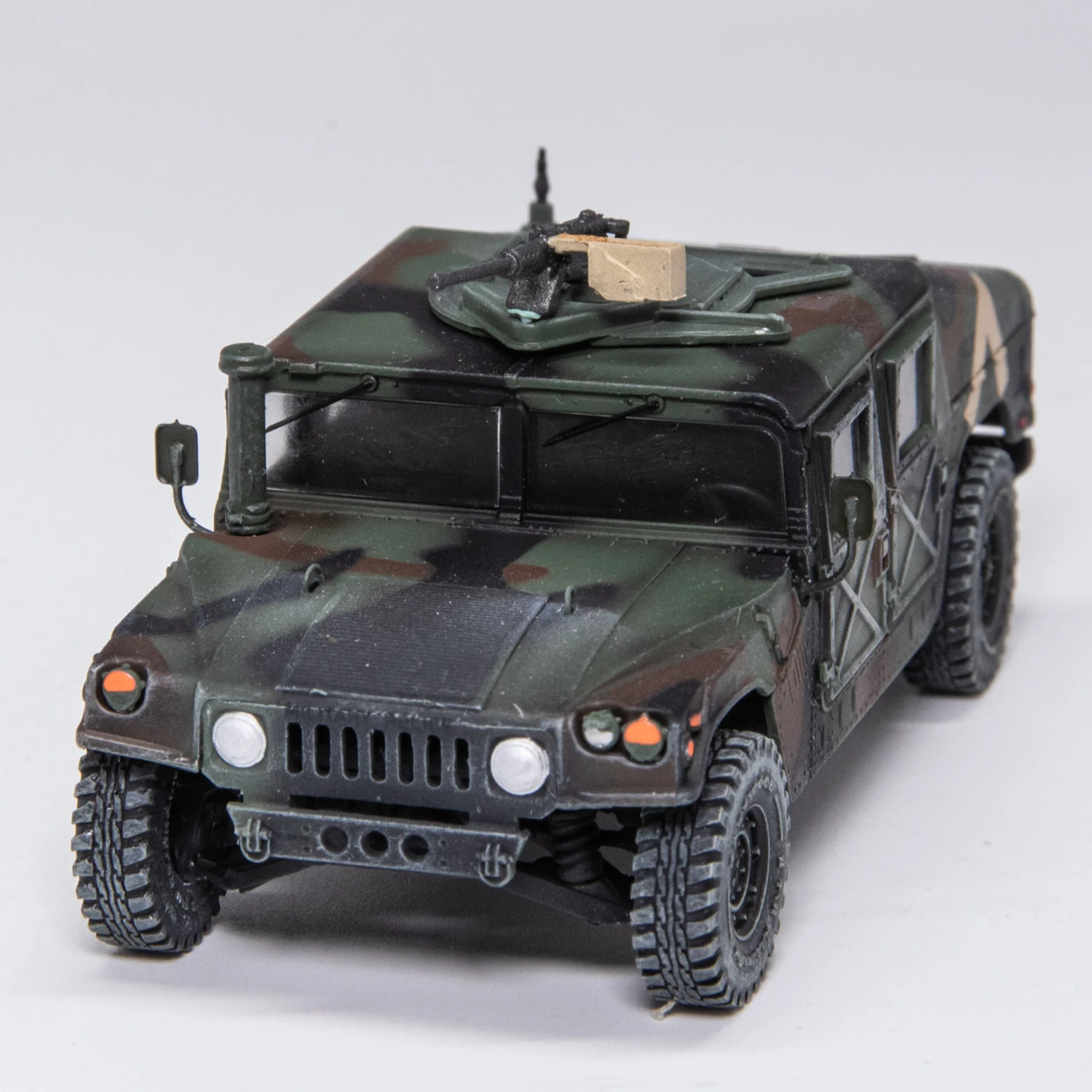 This meticulously crafted 1:72 scale diecast model of the 1991 US Military Hummer M1025 is made from durable PVC plastic, showcasing a rugged, boxy design with detailed features such as a camouflage pattern of green, black, and brown shades. Its realistic appearance includes a front grille, round headlights, ventilated hood, molded clear windows, side doors with handles and hinges, a mounted roof weapon, structural details, and deep-tread rugged wheels. Designed for static display, this collectible memorabilia offers an authentic military aesthetic perfect for enthusiasts and adult collectors aged 14 and above. Its precise craftsmanship makes it a standout addition to any military model collection.