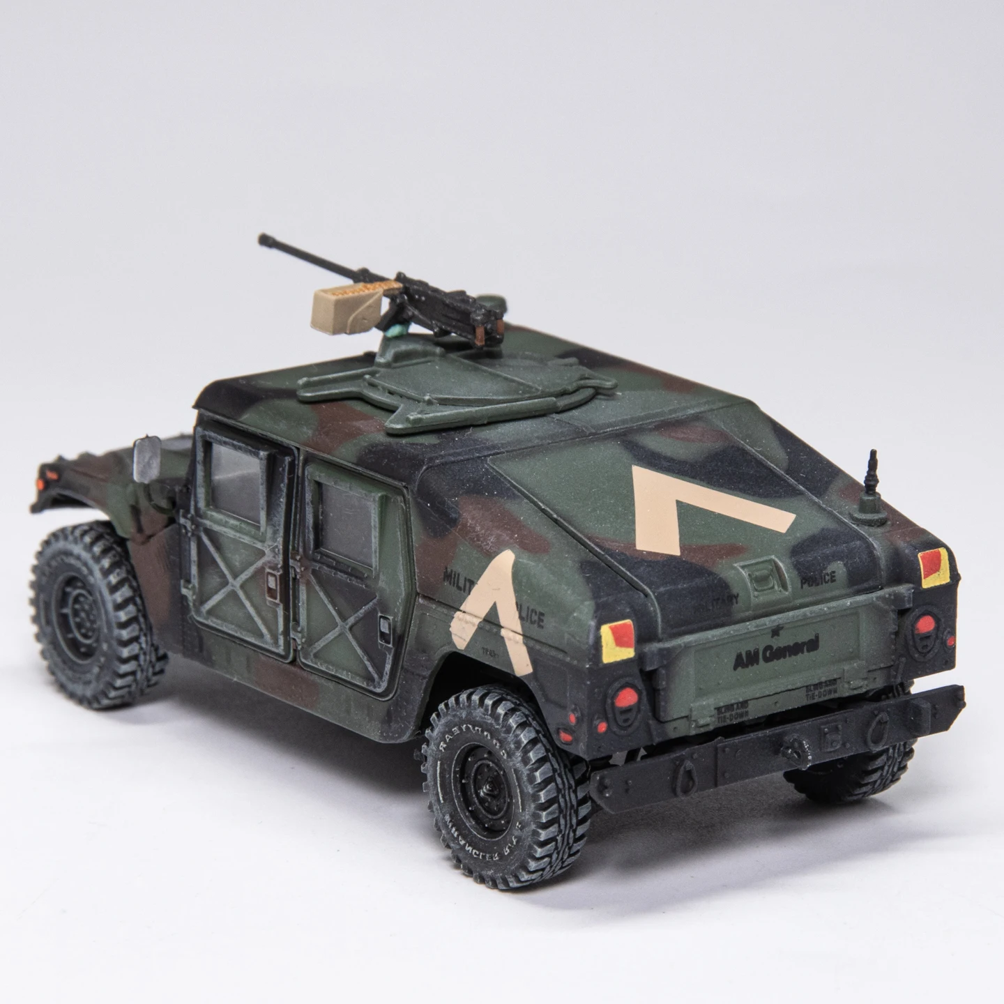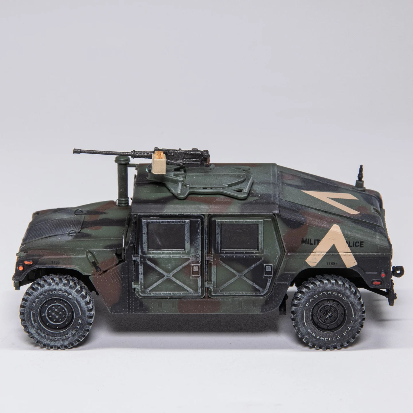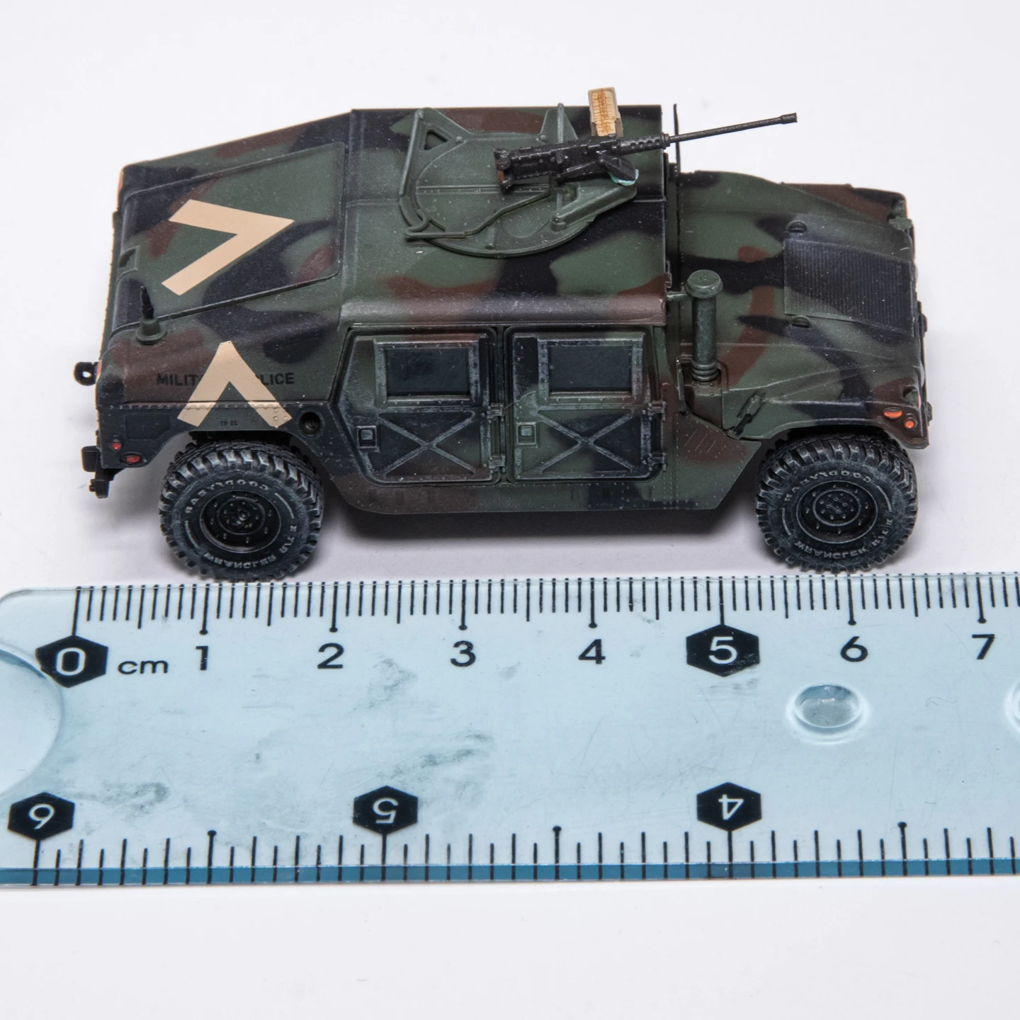 This meticulously crafted 1:72 scale diecast model of the 1991 US Military Hummer M1025 is made from durable PVC plastic, showcasing a rugged, boxy design with detailed features such as a camouflage pattern of green, black, and brown shades. Its realistic appearance includes a front grille, round headlights, ventilated hood, molded clear windows, side doors with handles and hinges, a mounted roof weapon, structural details, and deep-tread rugged wheels. Designed for static display, this collectible memorabilia offers an authentic military aesthetic perfect for enthusiasts and adult collectors aged 14 and above. Its precise craftsmanship makes it a standout addition to any military model collection.