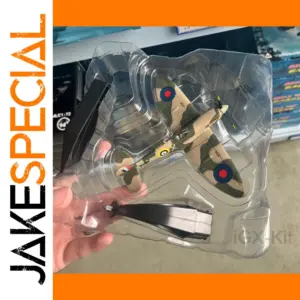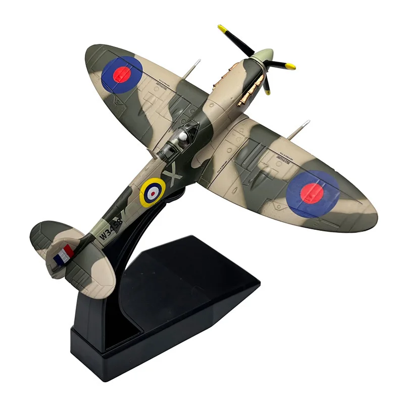 Immerse yourself in aviation history with this highly detailed 1:72 scale WWII British Spitfire fighter plane diecast model in the “Spitfire W3458″ color. Weighing approximately 220 grams, it features a fuselage length of 5″ (12.8 cm) and a wingspan of 6.1” (15.5 cm). Crafted from high-quality alloy and engineering plastic, the model showcases precise molding, intricate panel lines, rivets, and authentic camouflage in earthy tan and dark green shades with lighter beige patches. Accentuated by vivid roundel insignias, a bold fin flash, and a transparent cockpit canopy, it is mounted on a display bracket, perfect for collectors and military enthusiasts.
