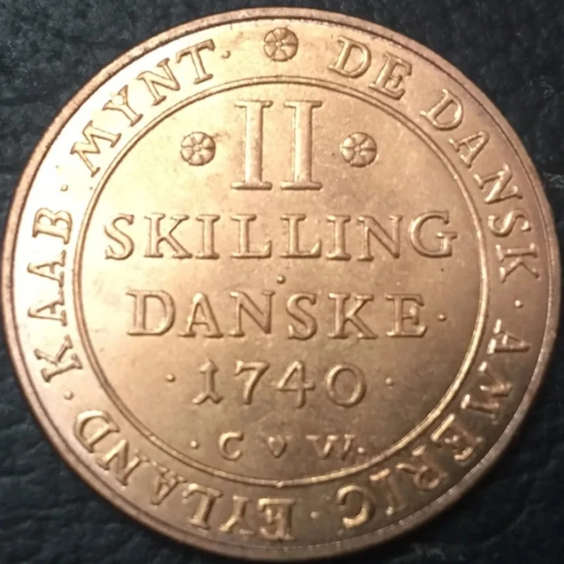 Imagine holding a beautifully crafted replica of a historic 1740 Danish West Indies 2 Skilling-Christian coin. Its warm, copper-colored finish and textured relief surface evoke the charm of antique European coinage. The bold, uppercase inscriptions “II SKILLING DANSKE 1740” command attention, encircled by ornamental floral motifs and tiny dots, adding a sophisticated, vintage touch. The intricate design and raised lettering make it a captivating piece for collectors, history enthusiasts, or as a unique décor accent. This coin is more than a replica; it’s a tangible connection to the 18th-century maritime and regional heritage, beautifully capturing the craftsmanship of that era in your hands.