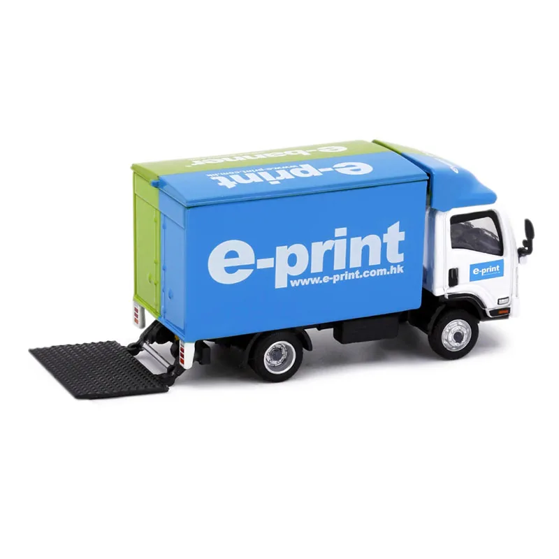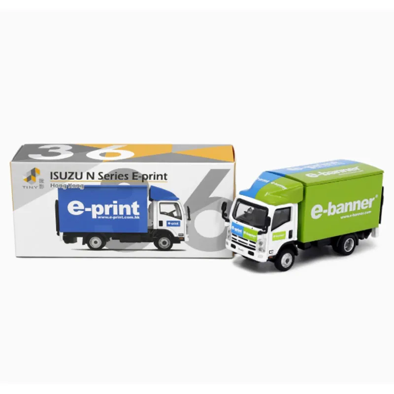 Experience the charm of this highly detailed miniature diecast model of the iconic Isuzu N Series Van. Crafted from alloy, it captures the sleek, modern design of a commercial delivery vehicle. The model features a white cab with black accents around the windows, grille, and bumper, complemented by a vibrant green cargo box with bold white branding and website URL. Its small, realistic wheels with silver hubcaps add to the authentic look, making it a perfect addition for collectors or enthusiasts who value precision craftsmanship. The clear windshield provides a view into the simplified interior. This model creates an engaging, real-world aesthetic that evokes professionalism and modern logistics. Ideal for display, this miniature model brings a touch of realism to any collection.