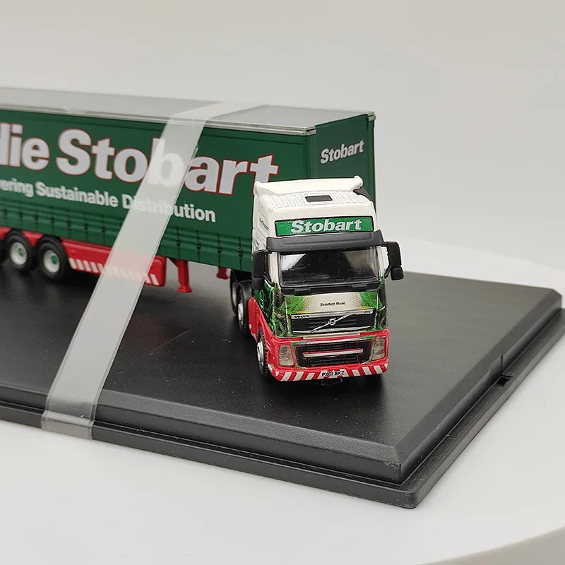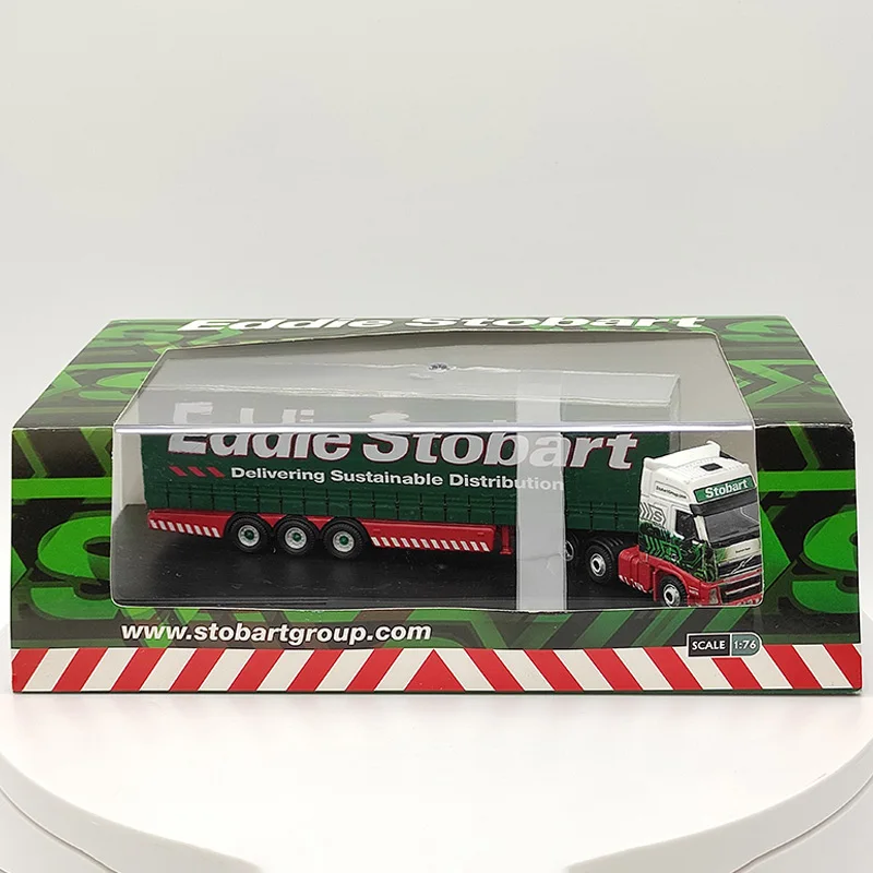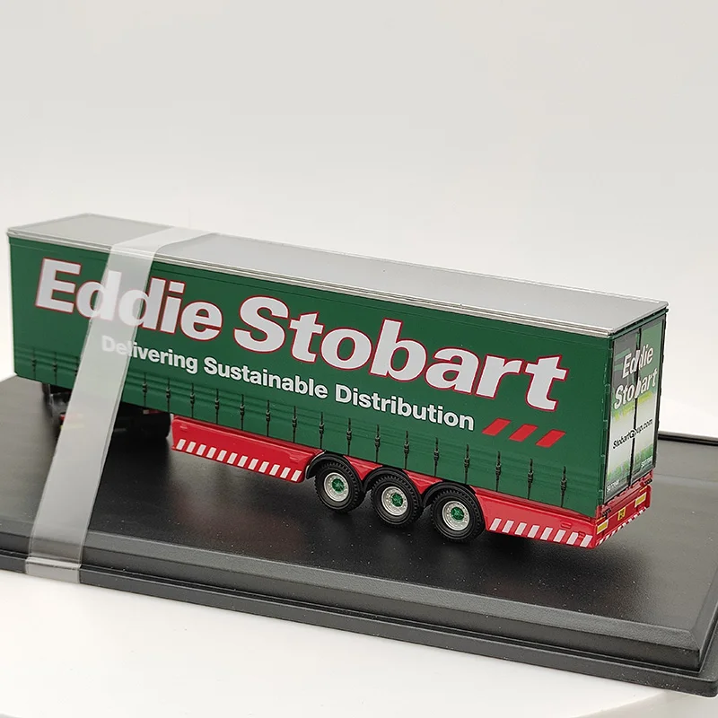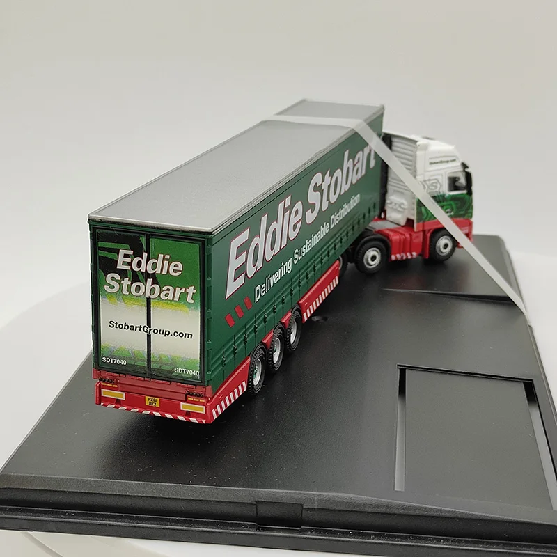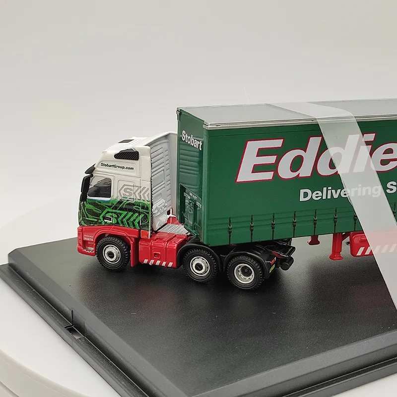 Experience the impressive craftsmanship of this 1:76 scale diecast alloy container truck, crafted with durable alloy and ABS plastic. Its sleek, modern design features a vivid white cab accented by vibrant green and contrasting black details that capture a realistic trucking scene. The detailed side mirrors, prominent front grille, and realistic panel lines on the cargo container add depth and authenticity. The container itself offers a ridged surface, accented with bold white and gray text reading “Eddie Stobart” and the slogan “Delivering Sustainable Distribution,” making it an eye-catching collectible. The red chassis with black wheels and intricately detailed tires enhances the overall authentic look. Perfect for display, this model encapsulates the strength and style of a real freight truck, creating a stunning addition for any collection.