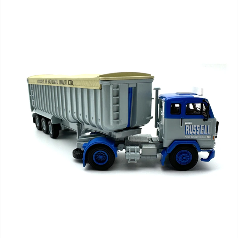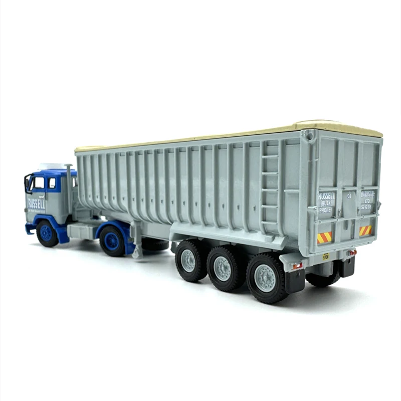 Step into the world of miniature precision with this meticulously crafted 1:76 scale diecast model of the iconic F88 heavy-duty truck. Measuring approximately 17 centimeters in length, 3.3 centimeters in width, and 4.6 centimeters in height, this model captures every detail of the real vehicle in a compact form. Its vibrant blue cab is accentuated by black window frames and side mirrors, while the black grille and circular headlights add authenticity. The cargo container, painted in a muted gray with vertical reinforcement ridges, is topped with a light tan cover, creating a striking contrast. Perfect for collectors, display enthusiasts, or nostalgic fans, this durable alloy and ABS plastic model offers a realistic depiction of industrial transport. Bring a piece of transportation history into your collection today.