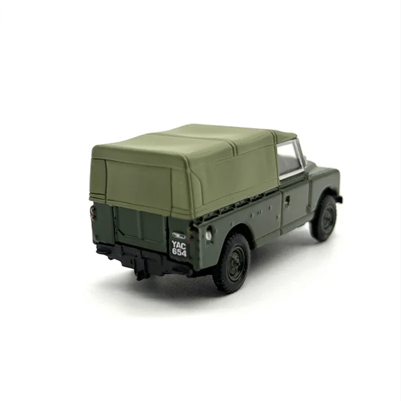 Welcome to your chance to own this finely crafted Land Rover II Canvas Transporter model, designed for collectors and enthusiasts who value authenticity and detail. Crafted in a rugged army green matte finish, this small-scale replica measures approximately 5.2 centimeters long, 2 centimeters wide, and 2.3 centimeters high, perfectly capturing the utilitarian design of the original vehicle. The die-cast construction combines alloy and ABS plastics, ensuring durability and an authentic feel. With detailed surface texturing, subtle panel lines, and realistic features like the classic grille, inset headlights, and molded black wheels, this model vividly recreates a military transport vehicle’s rugged aesthetic. Ideal for static display, it adds a touch of realism and vintage charm to any collection.