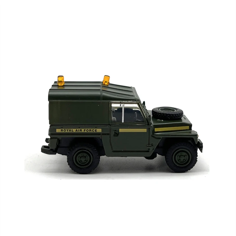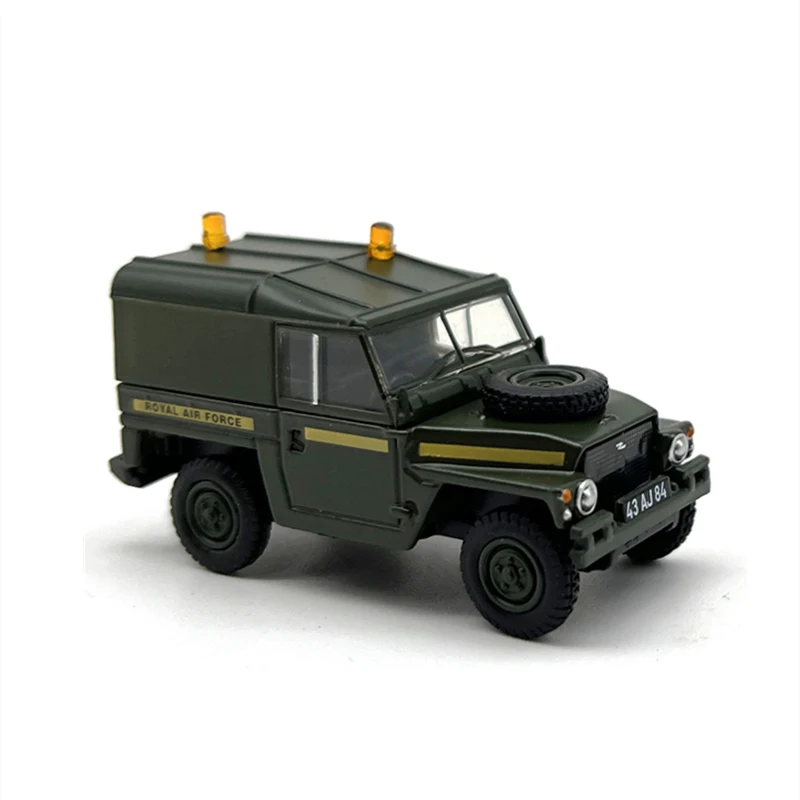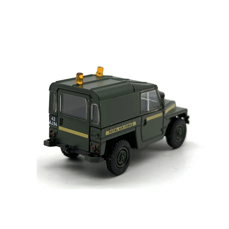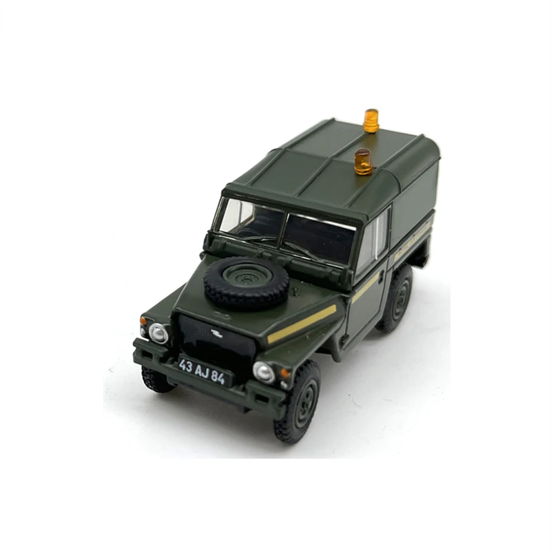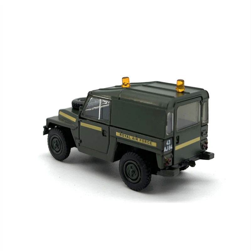 Experience the rugged charm of this 1:76 scale diecast alloy Land Rover light military off-road vehicle model, measuring 4.7 cm long, 1.7 cm wide, and 2.6 cm tall. Crafted from durable alloy and ABS plastic, it features a detailed design with a matte military-green finish, sharp panel lines, black grille, textured black wheels, and a small amber emergency light on top. Perfect for adult collectors, this model emphasizes resilience and authenticity, capturing the utilitarian style of a classic off-road military vehicle. Its sturdy construction and realistic detailing make it an ideal addition to any collection, evoking a sense of nostalgia and admiration for rugged design.