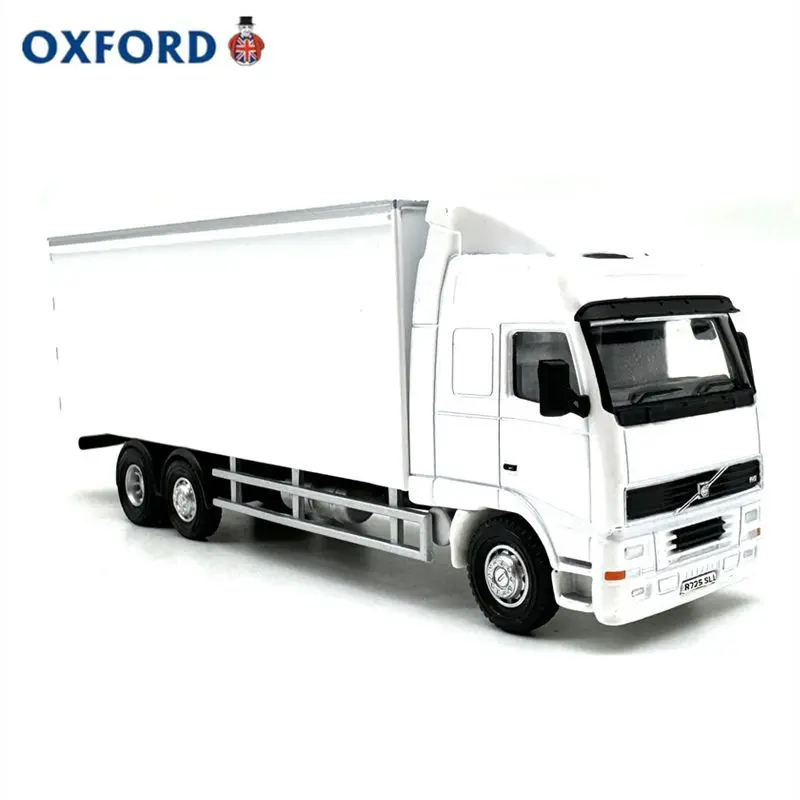 This meticulously crafted miniature model of the Volvo FH Box Truck captures the essence of modern design in a 1:76 scale. Predominantly white, the truck showcases a polished finish, complemented by black accents that lend it a realistic touch. The notably detailed front cab, emblazoned with the Volvo logo, enhances its authentic appearance. The streamlined roof hints at aerodynamic capabilities, while the silver metallic finish on the cargo area adds a striking contrast. Made primarily from alloy and plastic, this durable yet lightweight model measures 14.5 cm in length, 3.1 cm in width, and 5.1 cm in height, making it perfect for display or play.