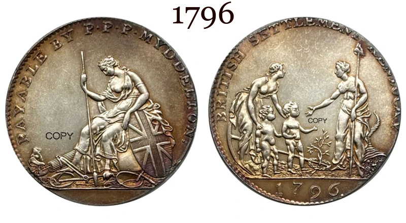 - Authentic-inspired design based on the 1796 Half Penny, offering historical authenticity with detailed classical motifs and engraved figures. The coin’s surface features fine lines and artistic craftsmanship.