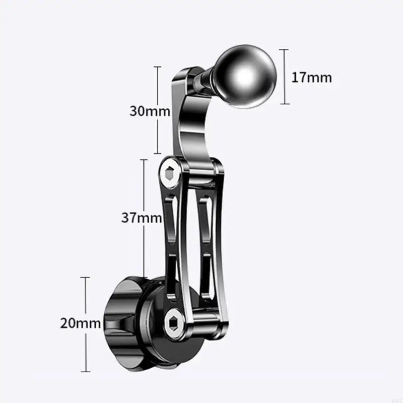 Imagine enhancing your driving setup with this sleek, metallic extension arm, crafted from durable aluminum and lightweight polycarbonate. Its shiny, reflective ball head offers smooth, effortless rotation, giving you perfect control over your device positioning. The slender, curved arm features elegant cutout openings, reducing weight without sacrificing strength, delivering a modern, minimalistic look. Available in three lengths—20mm, 30mm, and 37mm—this extender effortlessly adapts to your needs. Whether mounted on your car air vent, desktop, or tripod, it ensures a secure and flexible connection. With its polished finish and compact design, this accessory combines aesthetic appeal with practical usability, making your device more adjustable and accessible for optimal viewing.