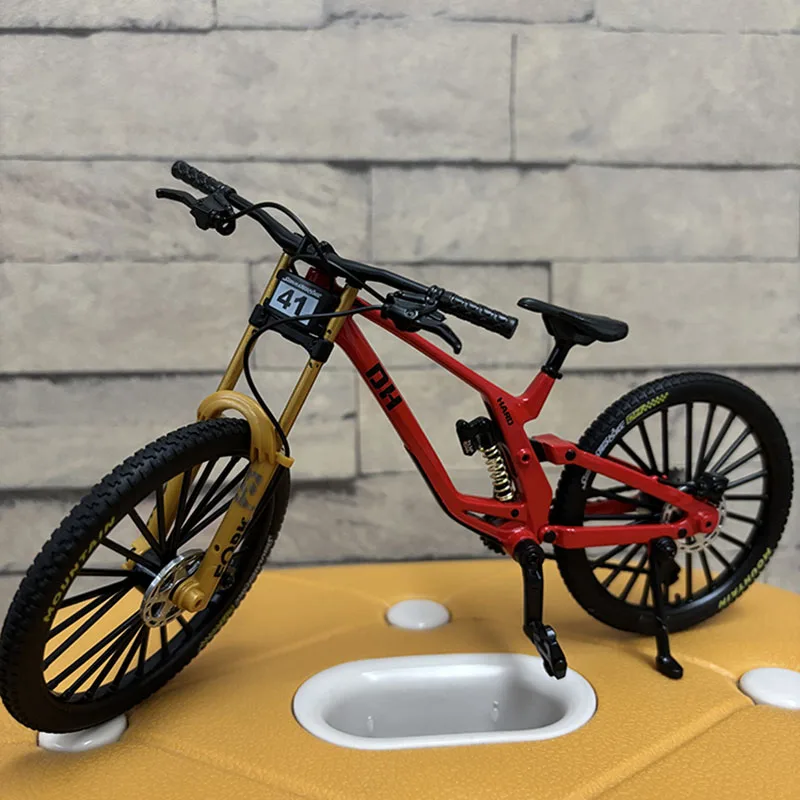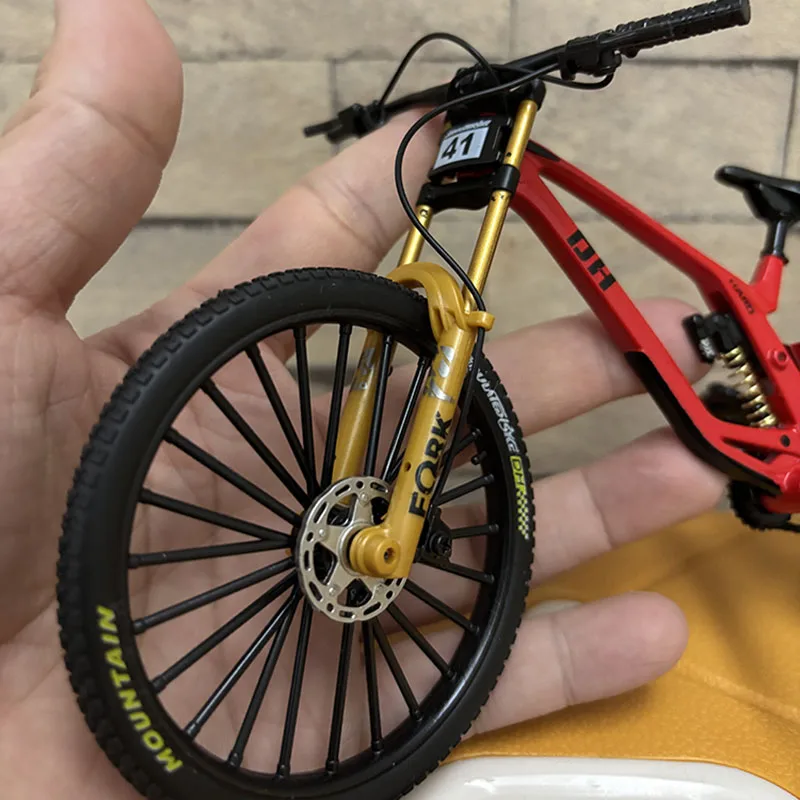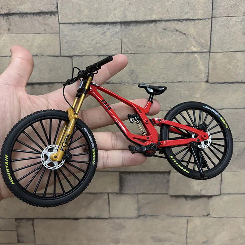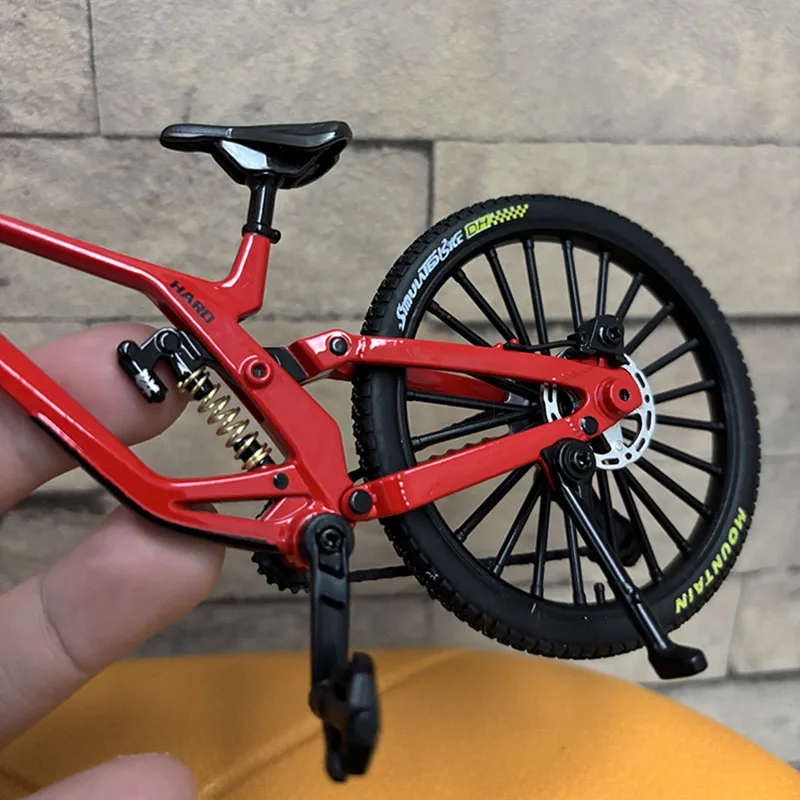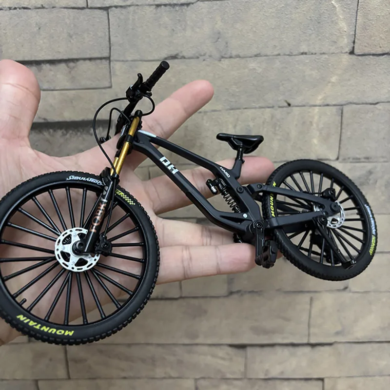 Experience the realism of this 1:8 scale alloy miniature bicycle, measuring 21 cm in length, 6 cm in width, and 12 cm in height. Crafted from diecast metal, it features detailed components such as knobby tires with textured tread, disc brakes, gear mechanisms, and proportionate handlebars and pedals. The sleek, modern design in black, with subtle gray and white accents, captures the essence of a high-performance mountain or racing bike. Suitable for collectors or enthusiasts, this finger-sized model is perfect for display or gifting, offering authentic craftsmanship and meticulous detail that bring your collection to life.