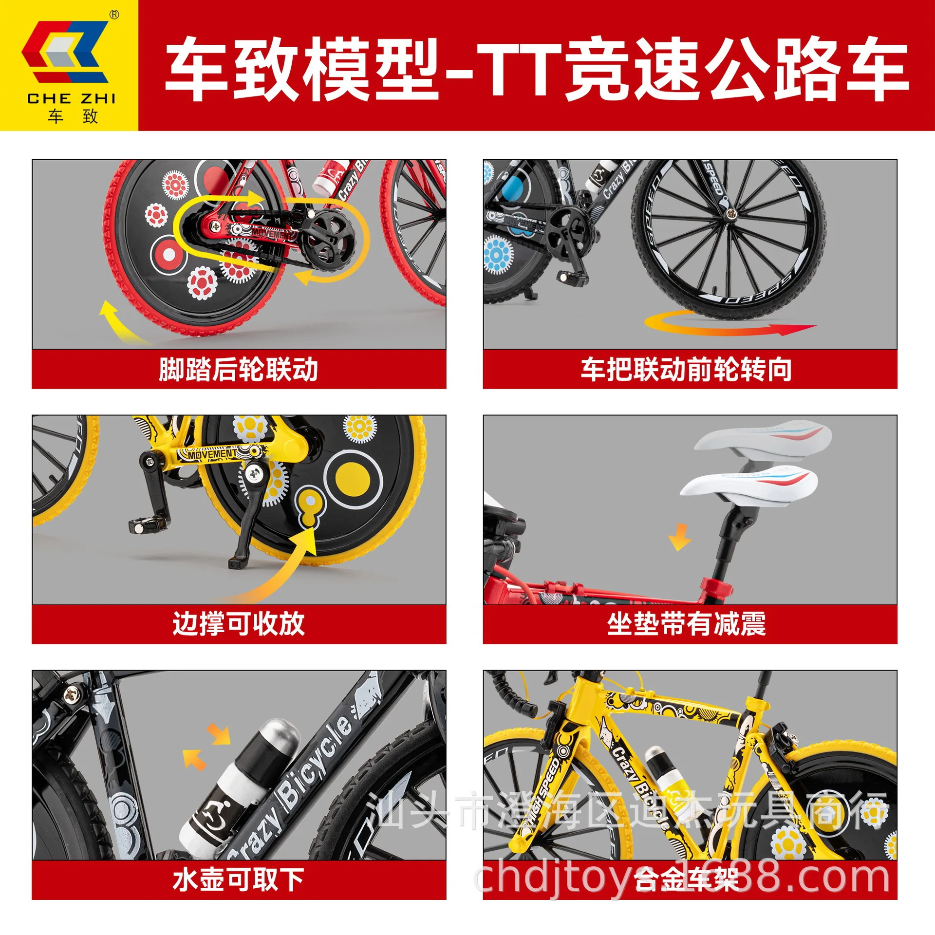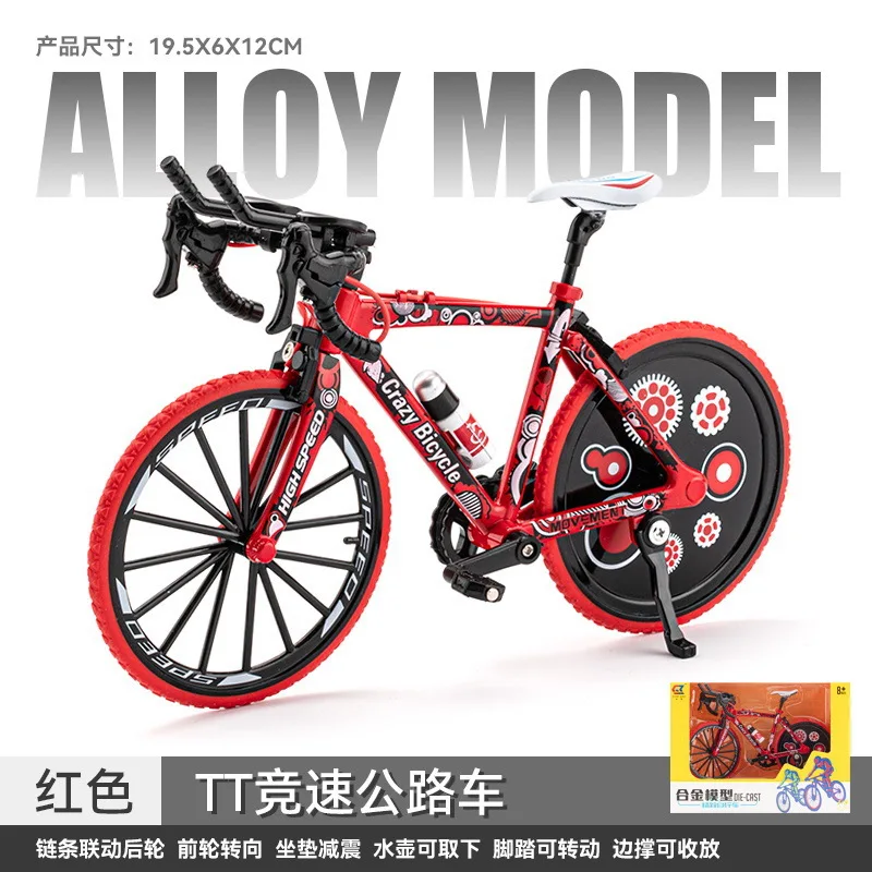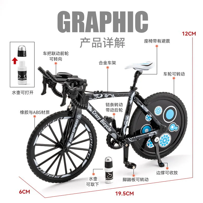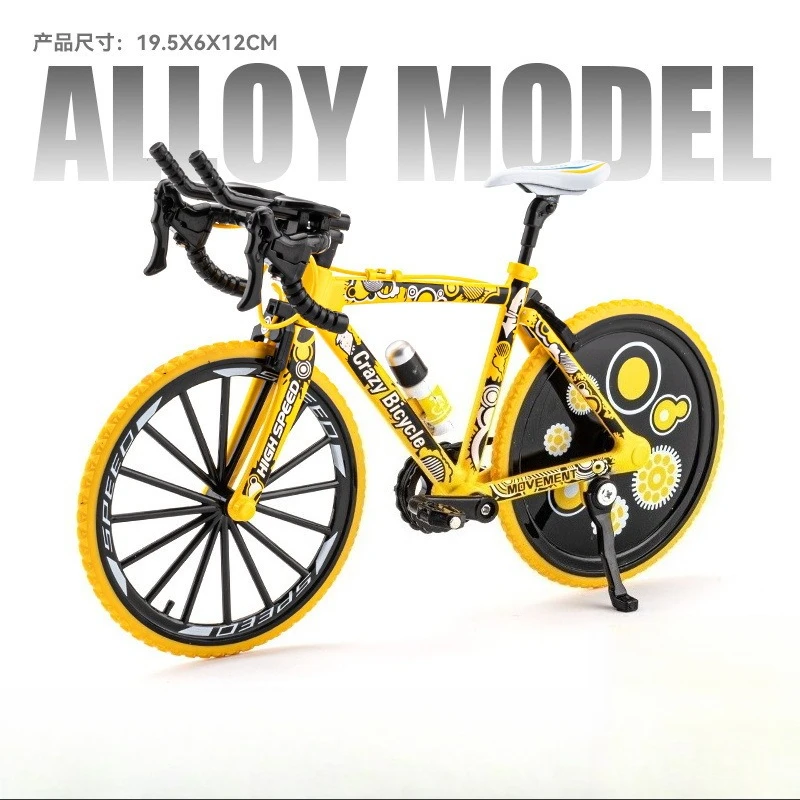 Experience the thrill of racing with this meticulously crafted miniature bicycle, designed for enthusiasts who appreciate detailed craftsmanship and vibrant aesthetics. Measuring approximately 19.5 cm in length, 6 cm in width, and 12 cm in height, this model captures the sleek, sporty essence of a real racing bike with precision. The strong alloy frame provides durability, while the colorful accents in red, black, or yellow make it a striking display piece. Its multi-functionality allows realistic movement through rotation and sliding, with shock absorption on the seat for added authenticity. This collectible is perfect for display, gifting, or as a modeling reference. Elevate your collection with a piece that embodies speed, style, and craftsmanship all in one.