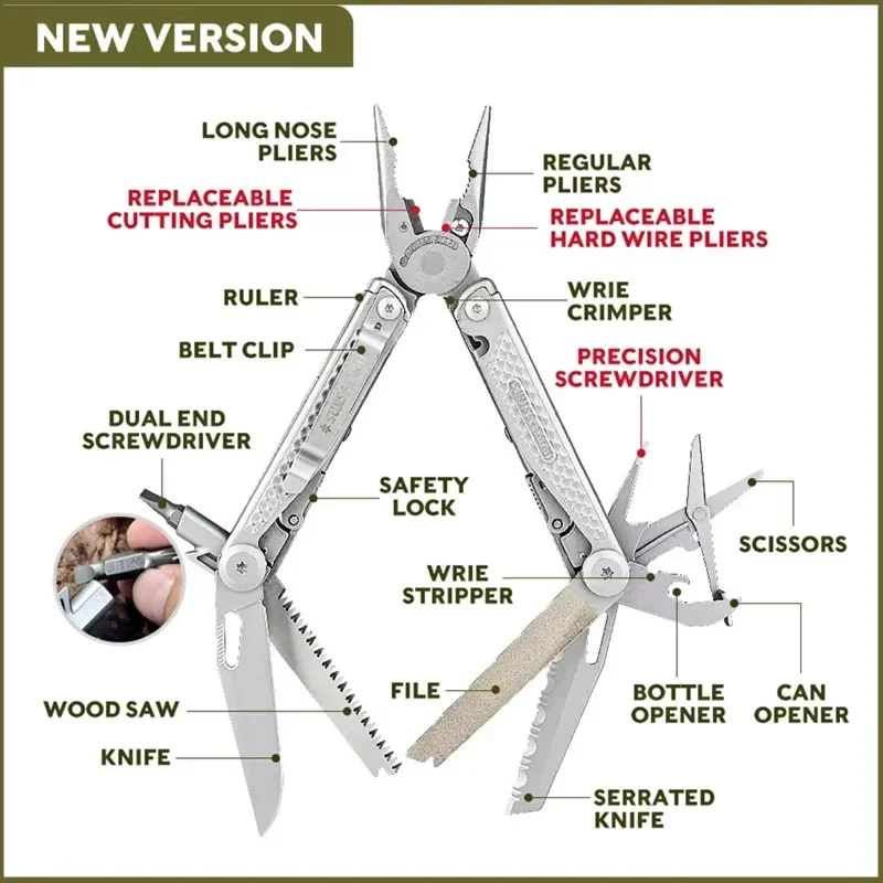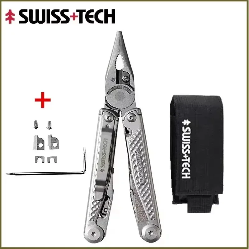 Imagine how often you'll reach for this versatile multitool during outdoor adventures, DIY projects, or unexpected repairs. Its compact, robust design fits perfectly in your pocket or tool kit, ready when you need it. Investing in this multitool means you're always prepared—no more searching for individual tools, just one reliable device for a multitude of tasks. Built with high-grade materials and a thoughtful array of functions, it offers unmatched convenience and durability. Don't miss the chance to upgrade your toolkit with this essential multitool; make your purchase today and experience the seamless blend of practicality and quality that only Swiss Tech delivers.