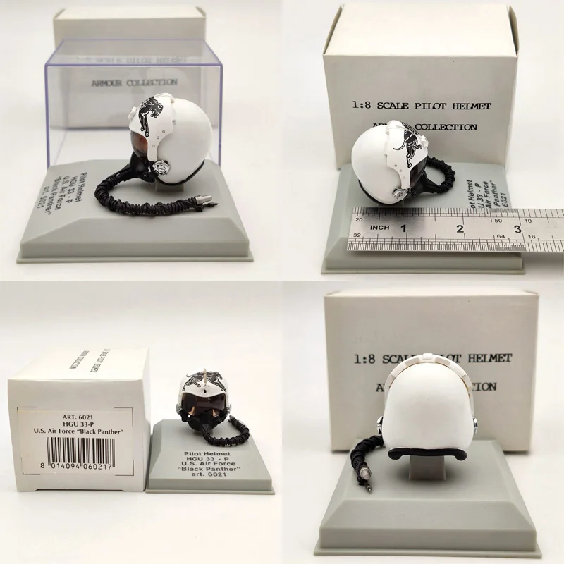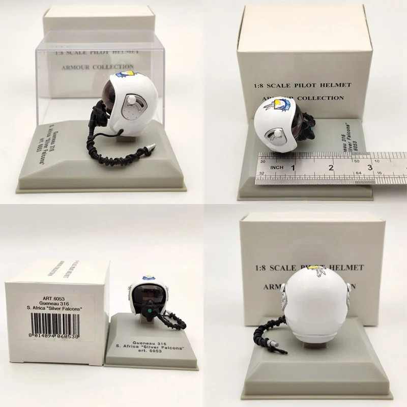Introducing the CDC Armour 1/8 Scale Pilot Helmet Diecast Model, a stunning collectible for aviation enthusiasts. This intricate helmet features a sleek design with variations including a green camouflage pattern, Swiss flag colors, a dark gray tone, and a glossy black finish, each showcasing realistic details like tinted visors and coiled microphone cords. Crafted from durable metal and plastic, this model captures the essence of true-to-life aviation headgear. Measuring approximately 1.6 x 1.4 x 1.4″, it’s a perfect addition to any collection or a unique gift for someone who appreciates detailed craftsmanship. Immerse yourself in aviation history with this captivating piece.