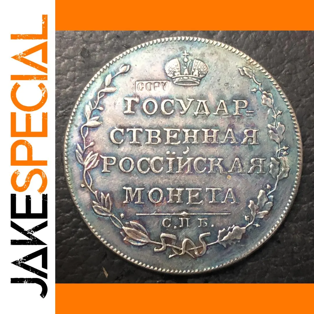 Immerse yourself in history with this meticulously crafted replica of the 1807 Russia Empire Ruble. Made from durable alloys designed to resemble silver, it features a distinctive scalloped circular shape adorned with intricate Cyrillic inscriptions, a regal crown symbol, and detailed floral motifs. The vintage-style aged patina and sharp craftsmanship highlight its antique appeal, making it a striking centerpiece or collector’s addition. Its textured surface and ornate detailing evoke the grandeur of Russia’s imperial past, offering an authentic and elegant display piece for enthusiasts and collectors alike. Perfectly sized to confidently share the story of a rich cultural heritage.
